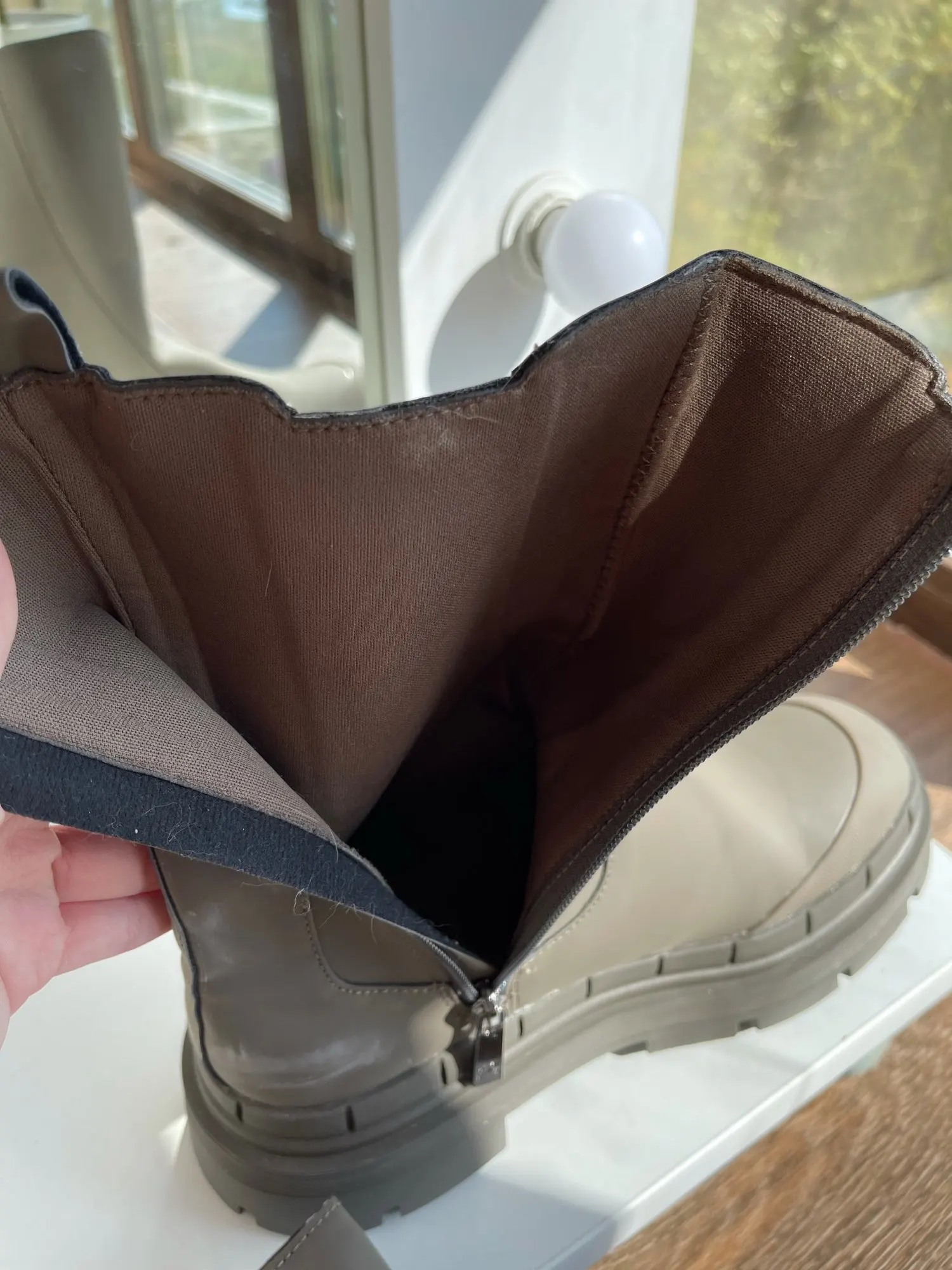 Ботинки отличного качества, нет следов клея или постороннего запаха. Замочек работает хорошо. На ногу сели комфортно, размер 9 соответствует 39 размеру. Упакованы были в воздушный пакет, доставка около 14 дней, трек номер отслеживался. Очень стильные ботинки, к покупке рекомендую.