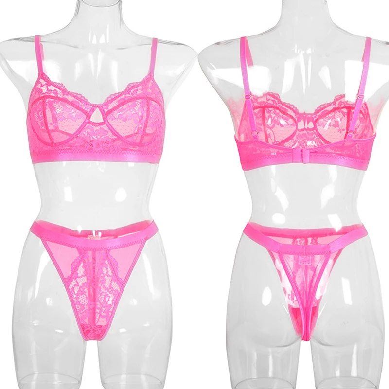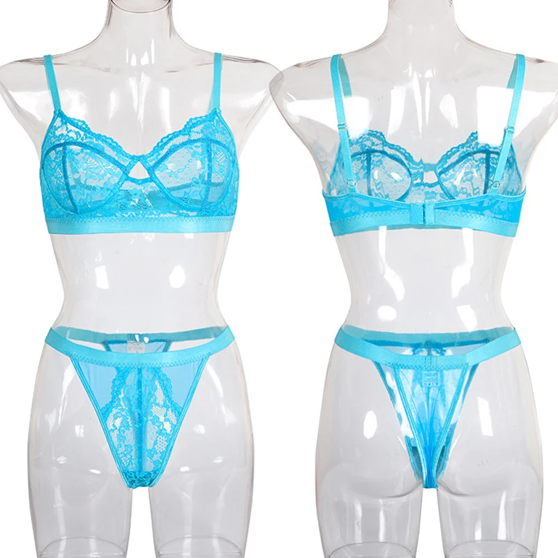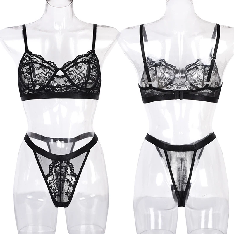 Комплект женского нижнего белья из прозрачного кружевного бюстгальт...