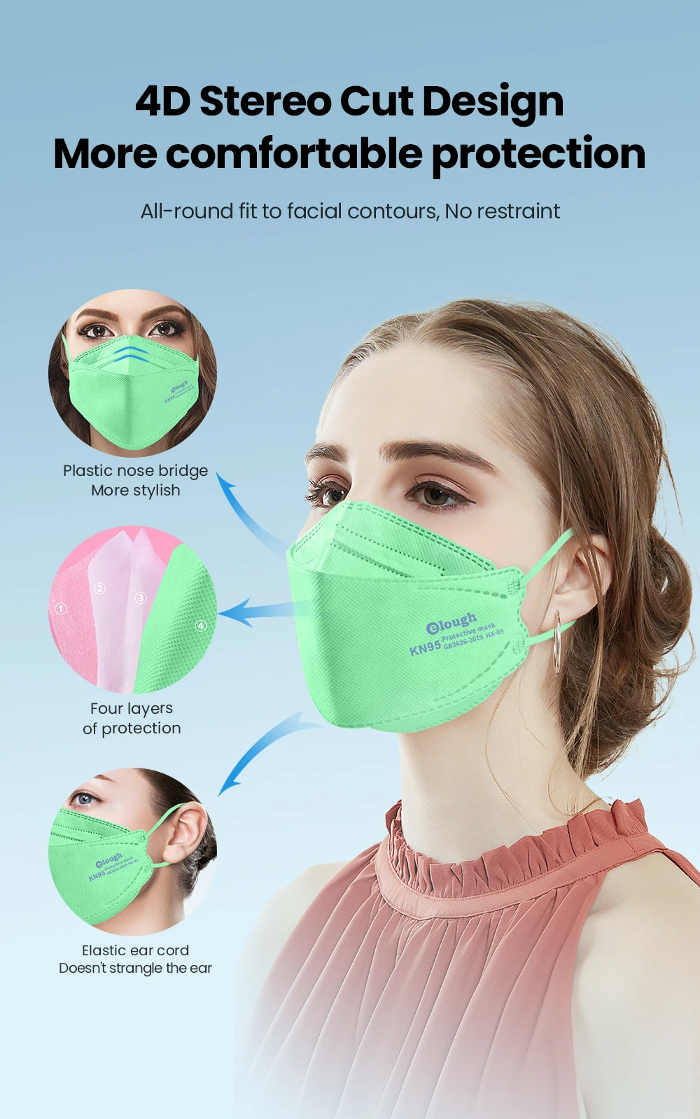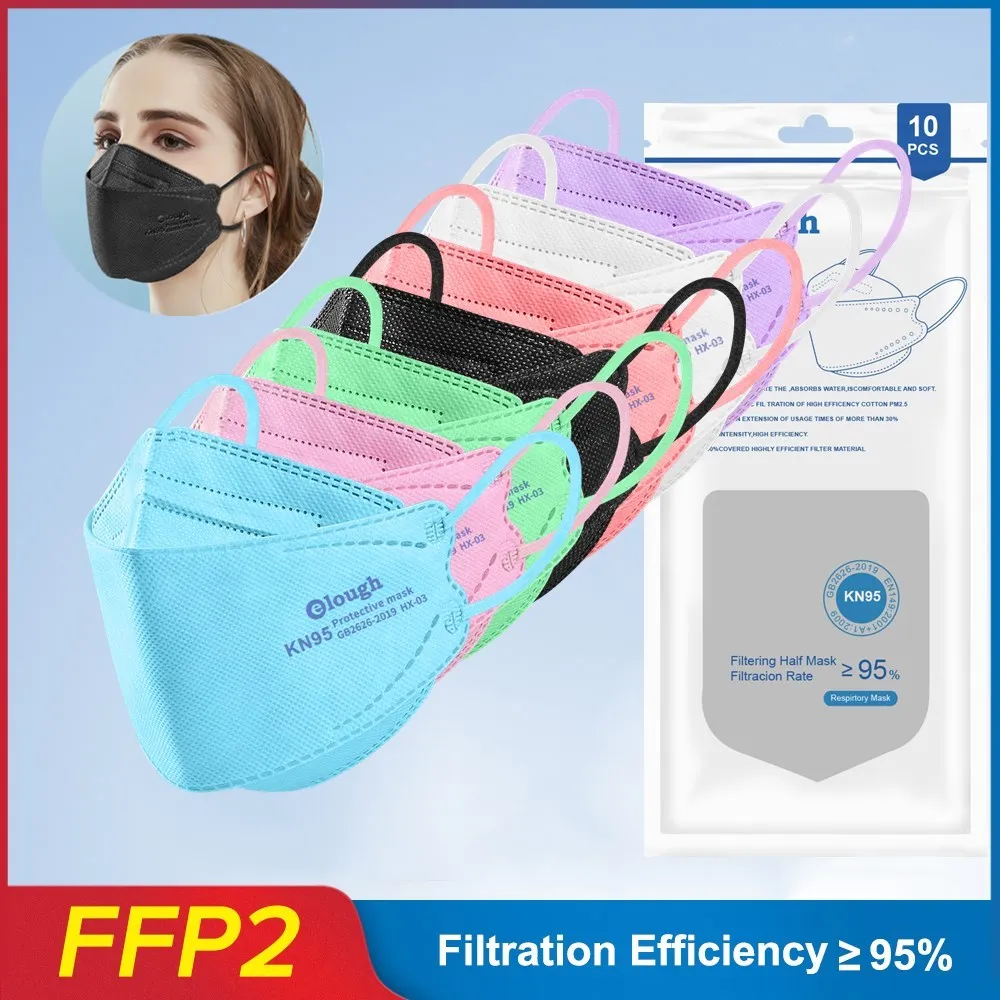 Elough Fish маска KN95, цвета масок FFP2 для взрослых, 4-слойная, г...