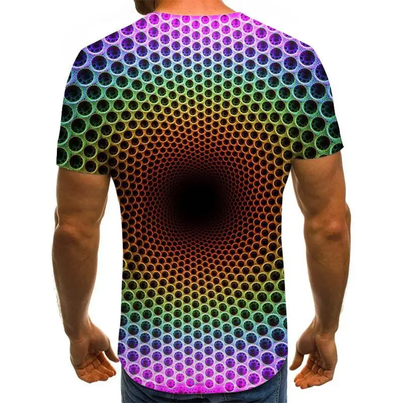 Новинка 2020, летняя повседневная мужская футболка, топы в трехмерную клетку в стиле Харадзюку, трехмерная спиральная футболка с круглым вырезом, рубашка, женская уличная одежда