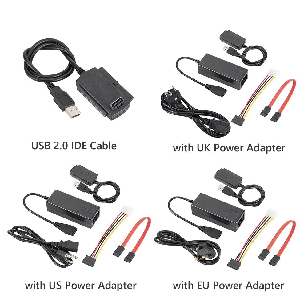 Адаптер-конвертер USB 2,0 в SATA PATA IDE для SSD 2,5 дюйма с внешним адаптером питания переменного тока