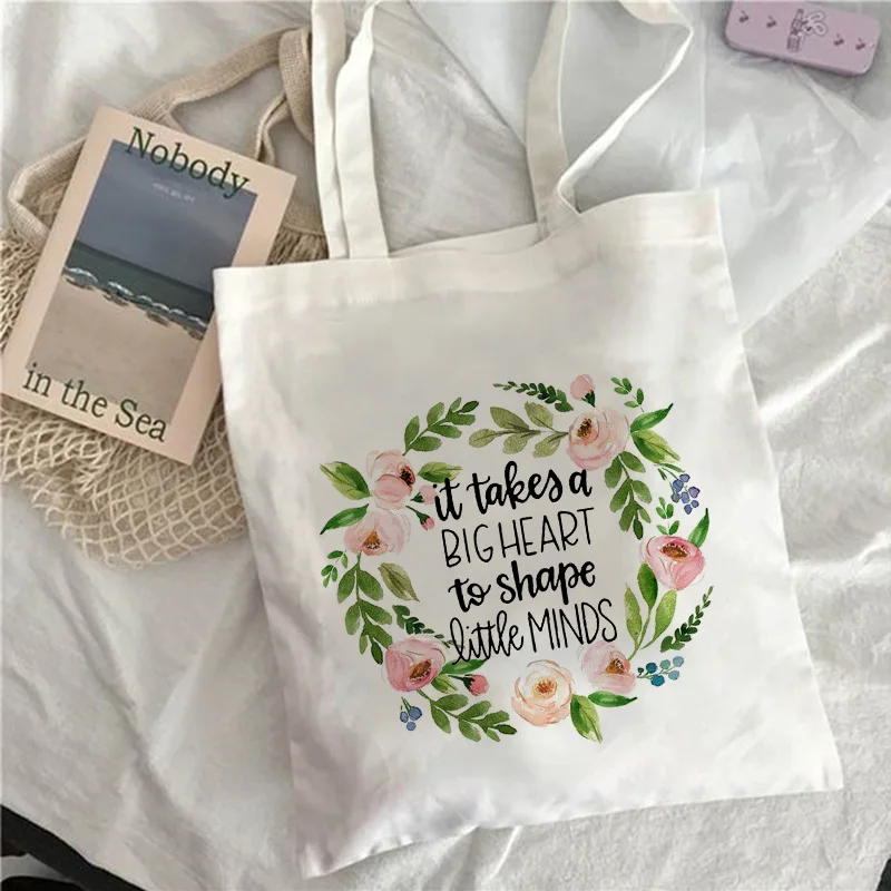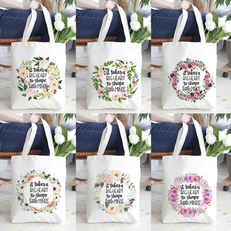 Это занимает большое сердце, чтобы придать форму маленьким умам, учителям жизни, холст, белая хозяйственная сумка-тоут, многоразовая сумка для книг на плечо, подарочная сумка
