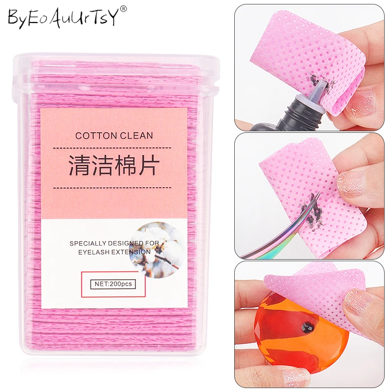 200 шт., безворсовые салфетки для снятия клея с ресниц