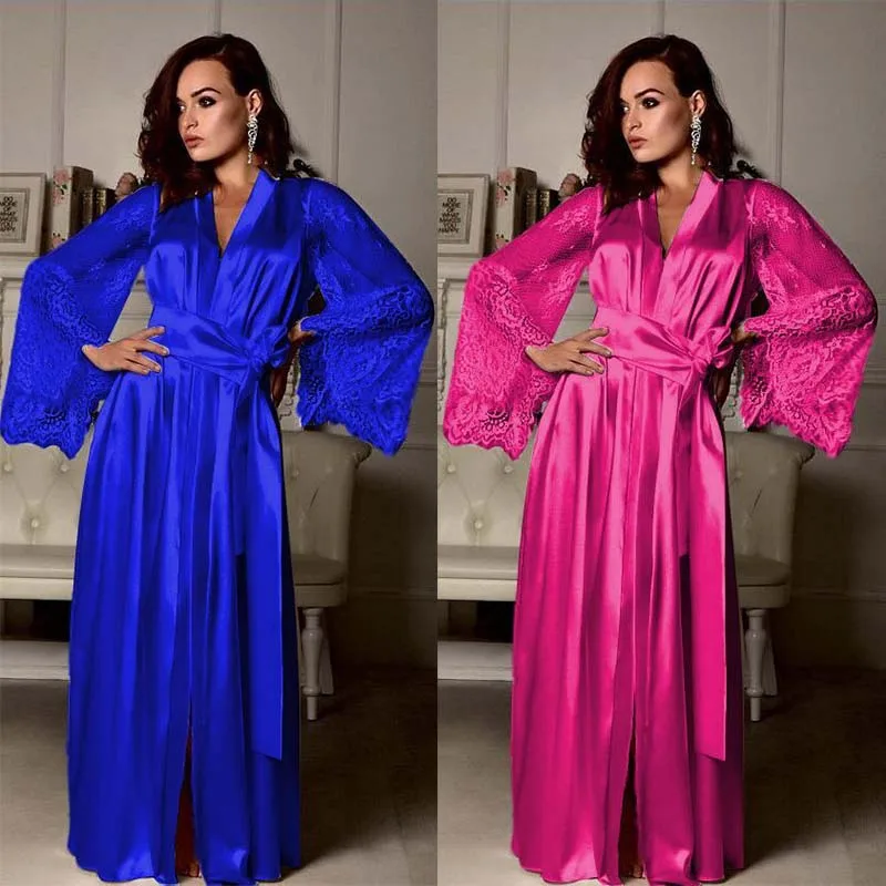 2021 сексуальное женское белье, Шелковый кружевной длинный халат, н...