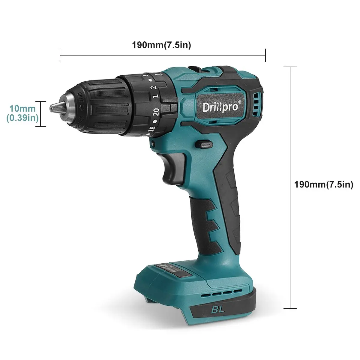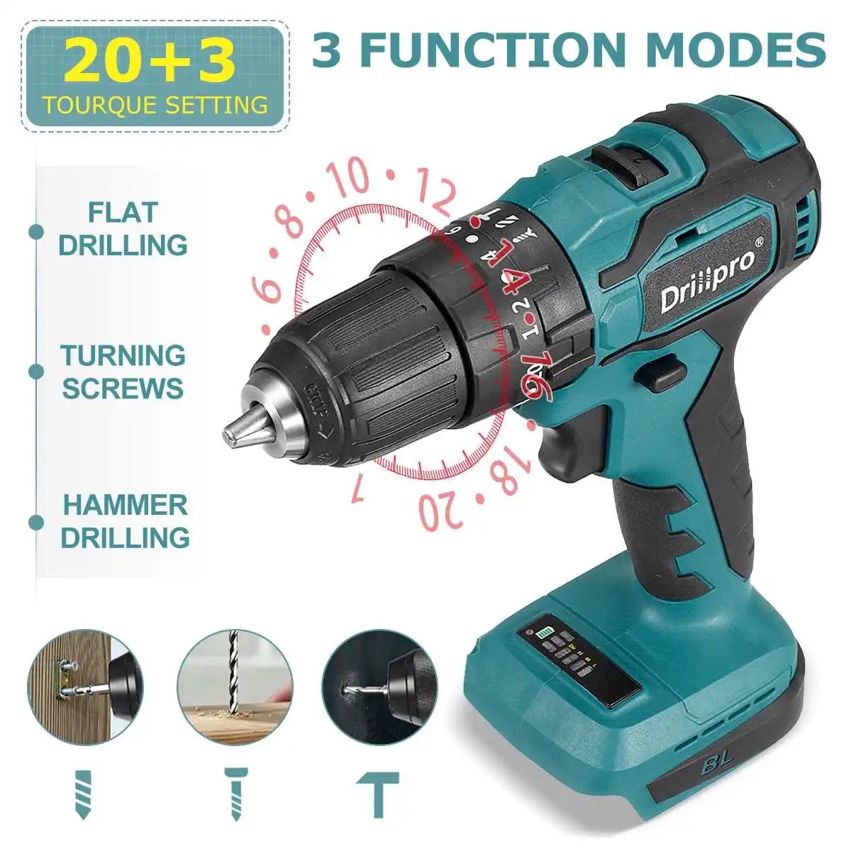 Особенности-Мощный бесщеточный двигатель обеспечивает крутящий момент до 23-48 нм и скорость 1800 об/мин.-Настройки выбора крутящего момента 20 + 3 обеспечивают наиболее подходящую силу сверления и точный контроль сверления дерева, металла, пластика и всех задач отвертки.-2 настройки Переменной скорости для плавного завинчивания на низкой скорости и быстрого сверления на высокой скорости.-Функции прямого и обратного хода позволяют управлять винтами или откручивать их с удобством.Светильник увеличивает видимость рабочей зоны, Мягкая рукоятка снижает усталость во время использования.-Беспроводная Дрель имеет компактную и легкую конструкцию, избавившись от проблем с нахождением гнезда для зарядки с помощью проводной дрели.