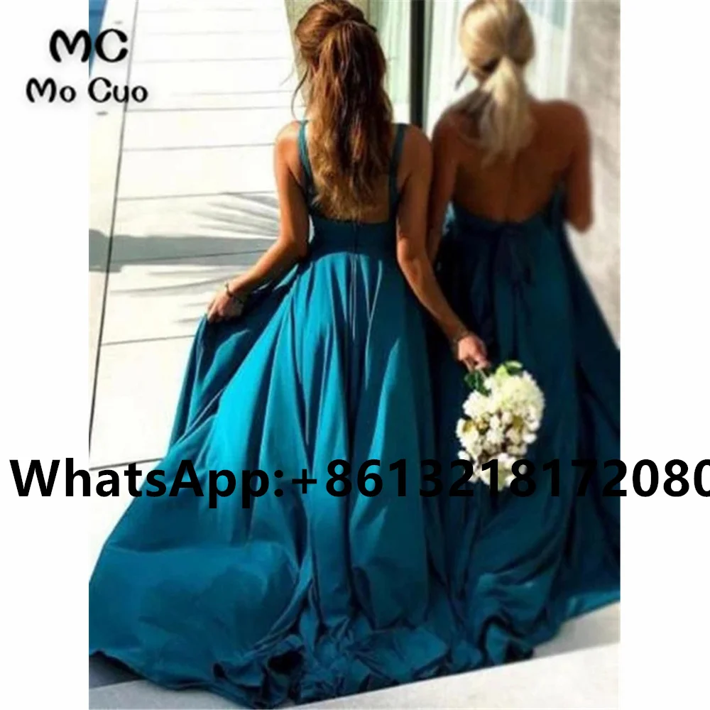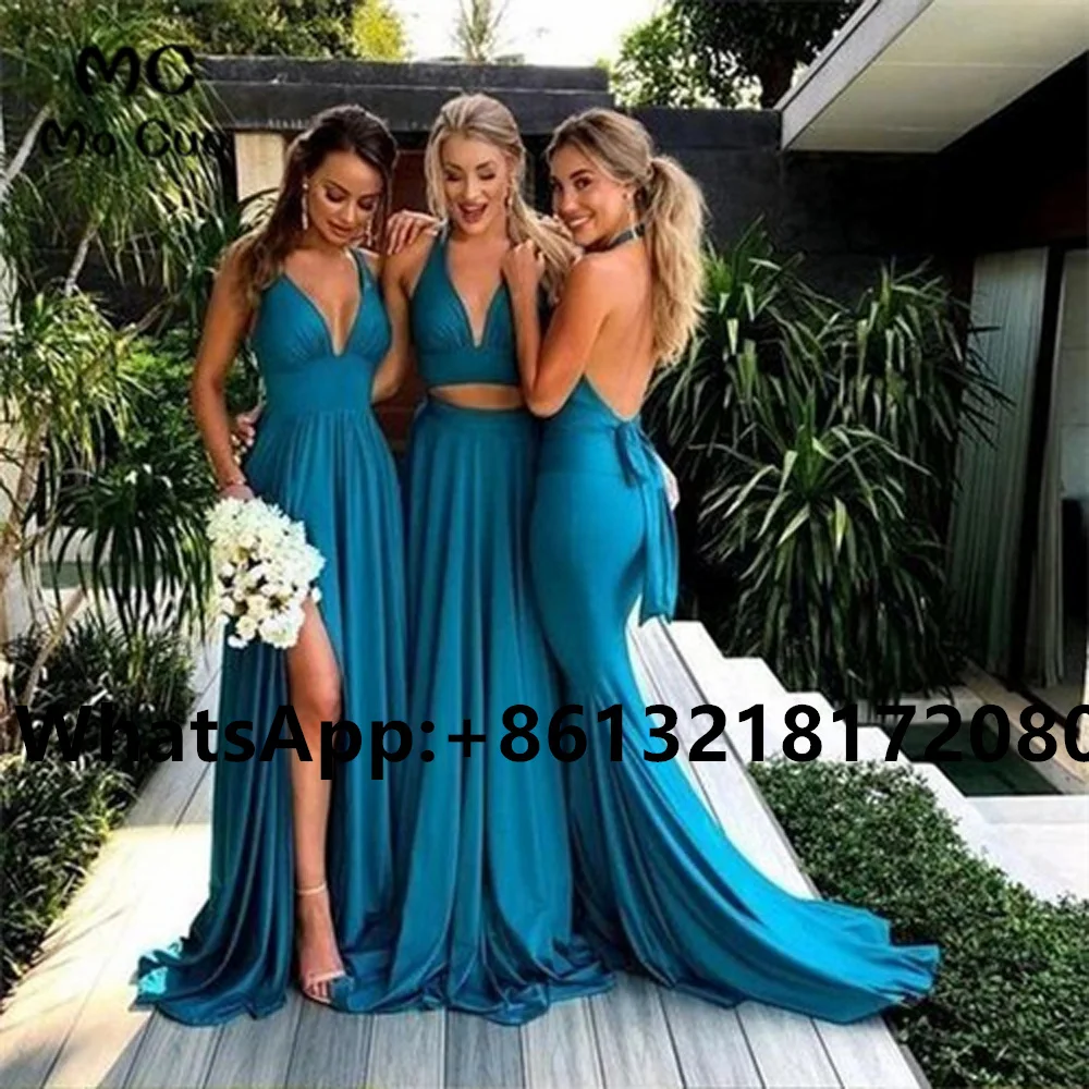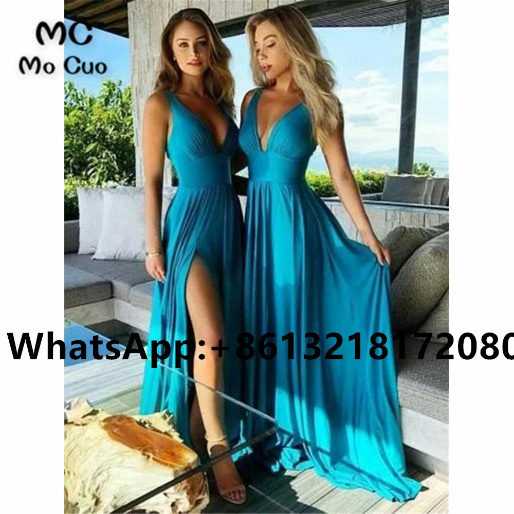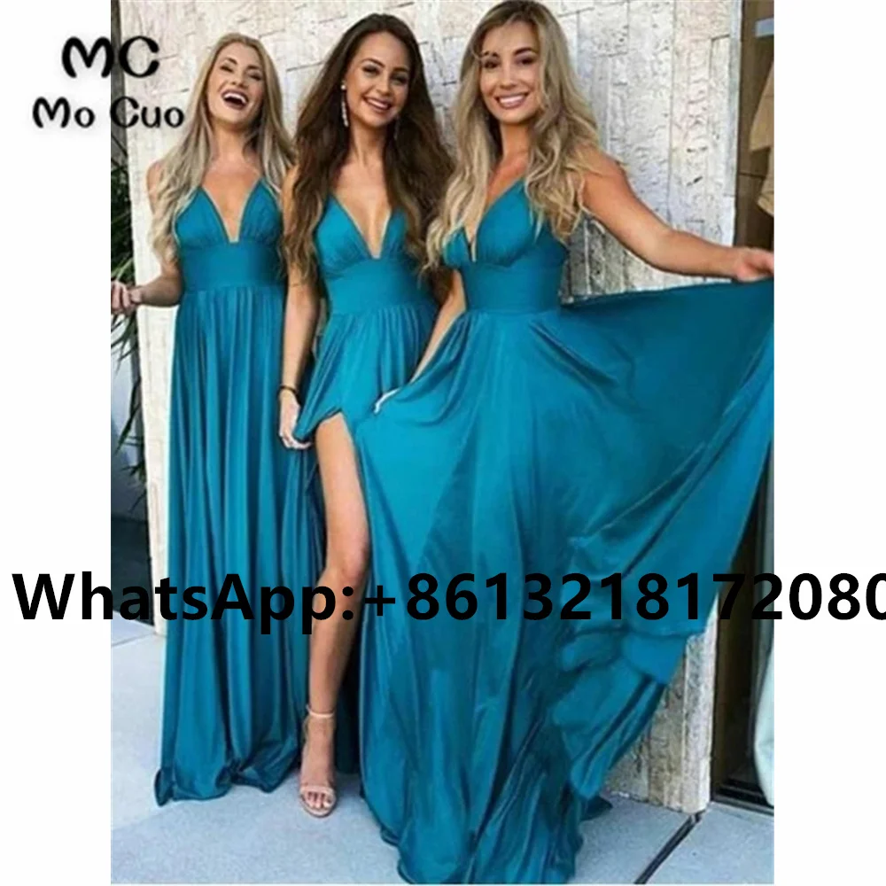 Пикантное длинное платье подружки невесты, модель 2021 года, платье для свадебной вечеринки, шифоновое Плиссированное Шелковое атласное платье с разрезом спереди, официальное платье подружки невесты, es
