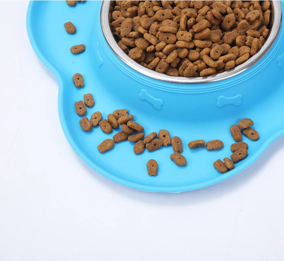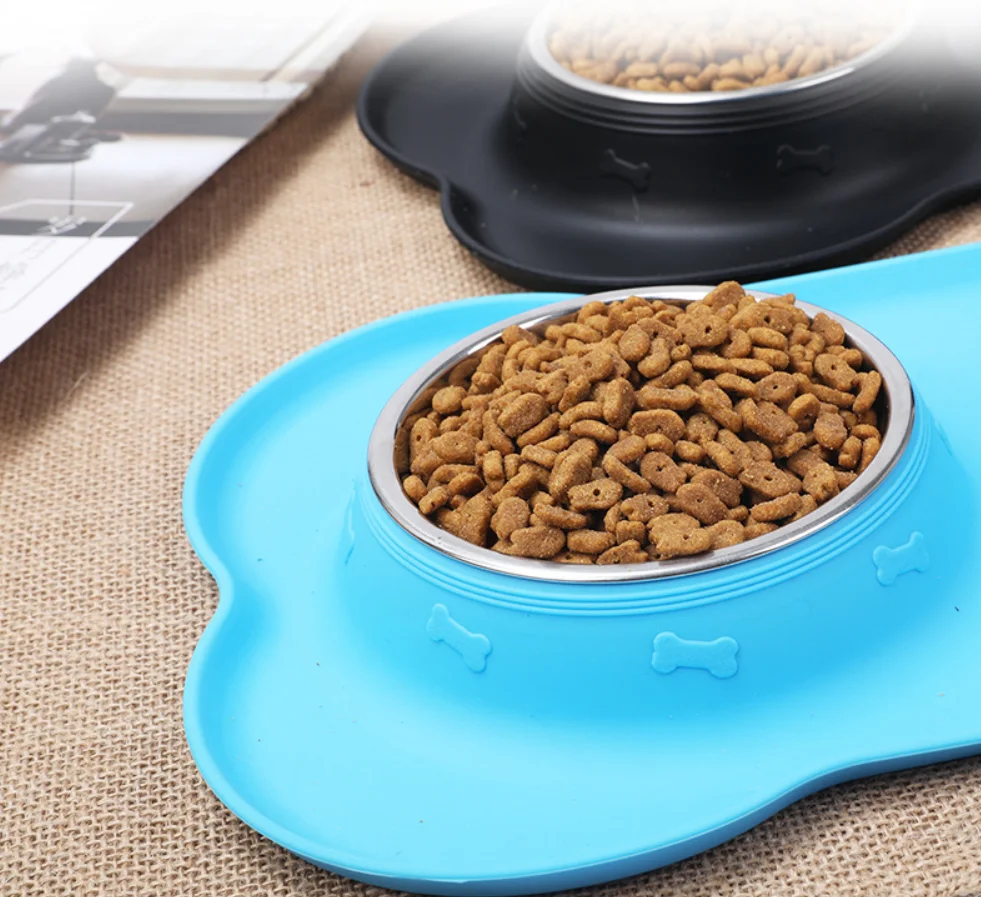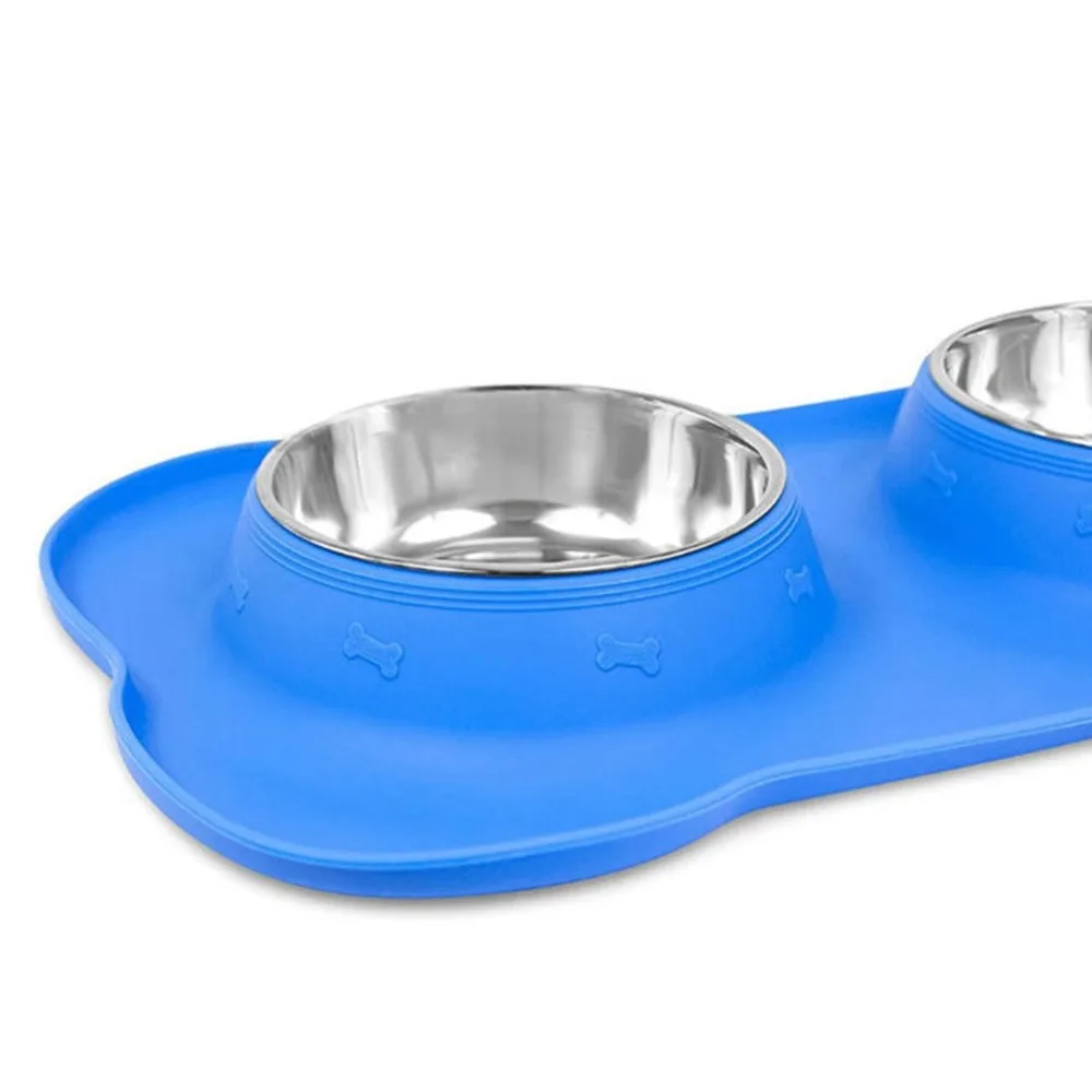 Нескользящая двойная миска для собак с силиконовым ковриком, прочная миска из нержавеющей стали для кормления домашних животных без пролива