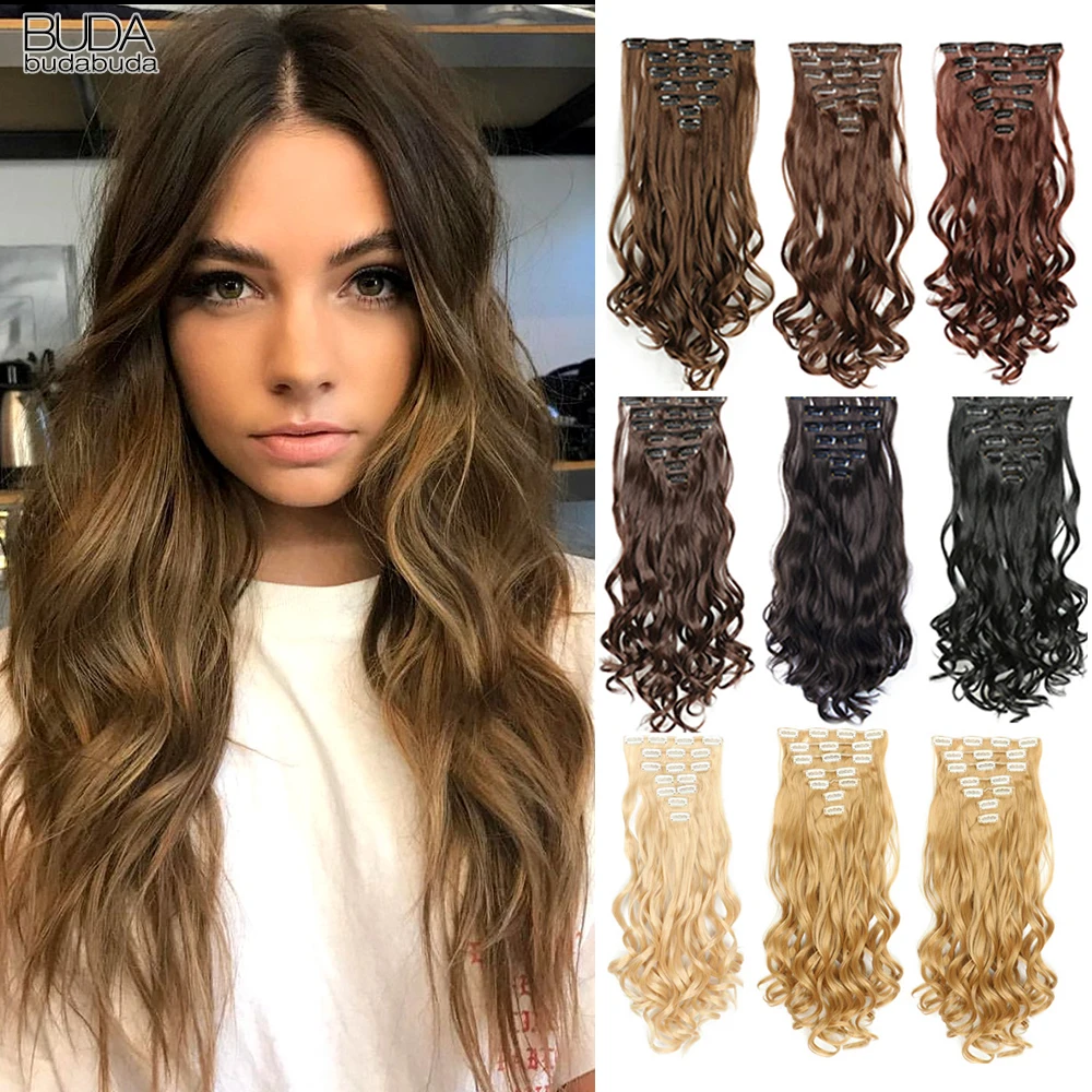 Накладные волосы с 16 заколками, 22 дюйма, длинные волнистые синтет...