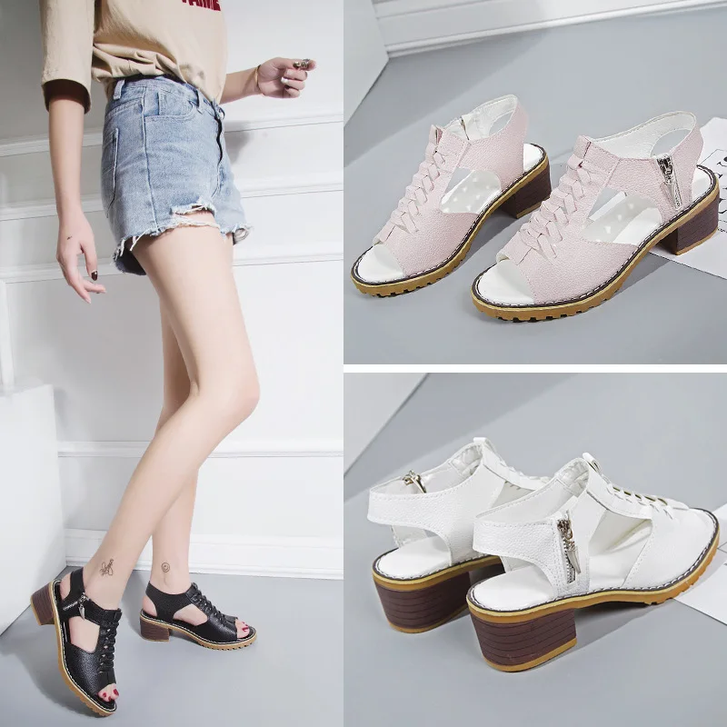 Сандалии женские на квадратном каблуке, Босоножки с открытым носком...