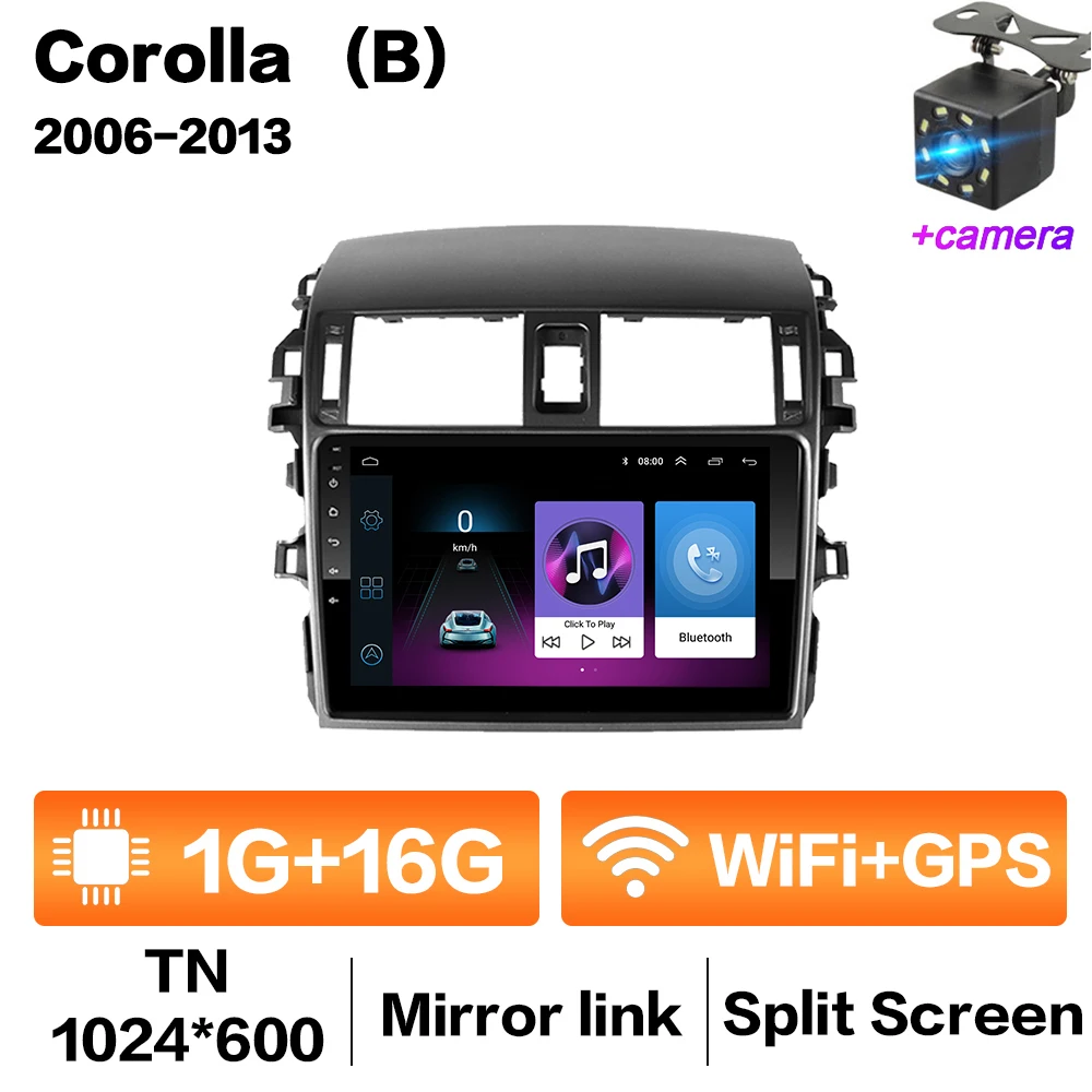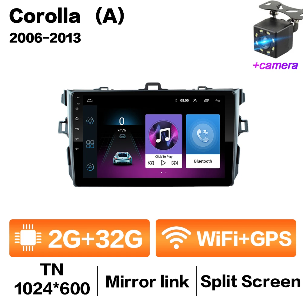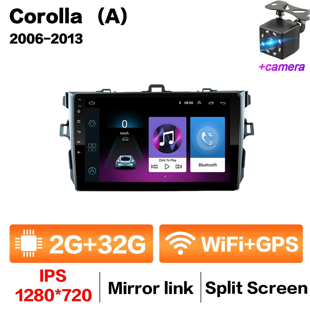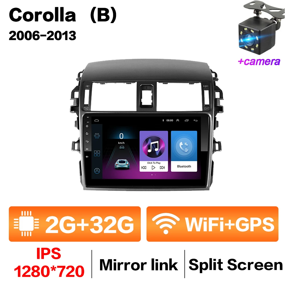 Автомагнитола 2 DIN Android CarPlay GPS мультимедийный плеер для Toyota Corolla E140 E150 2006 2007 2008 2009-2013 IPS экран 1280*720