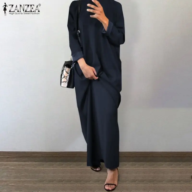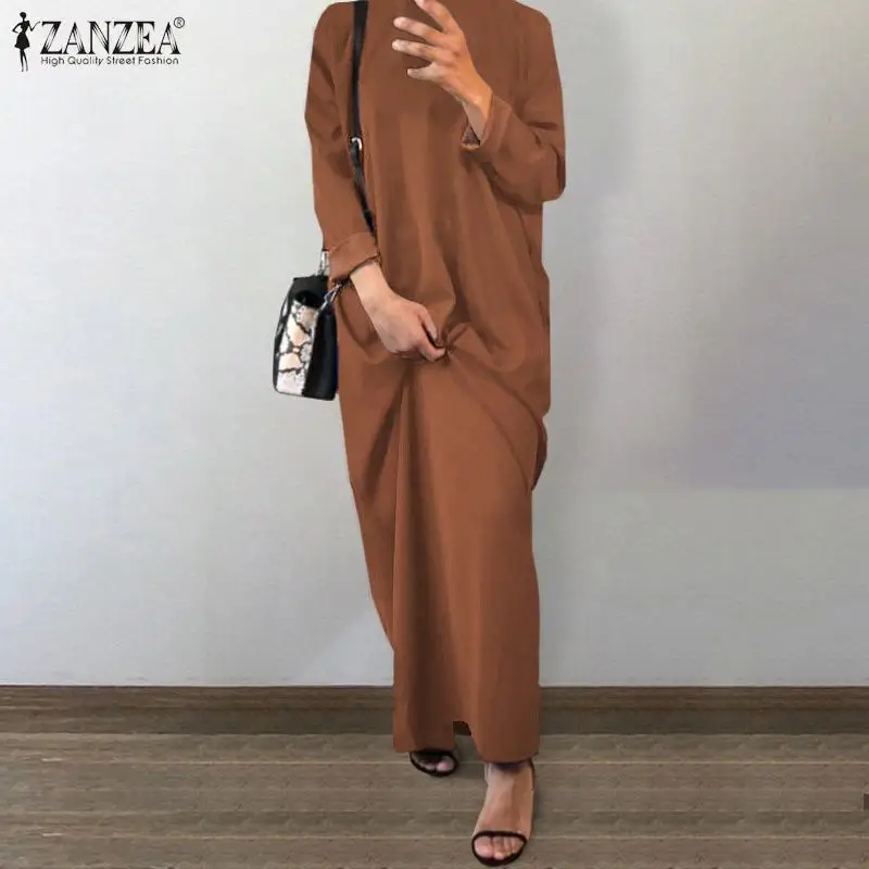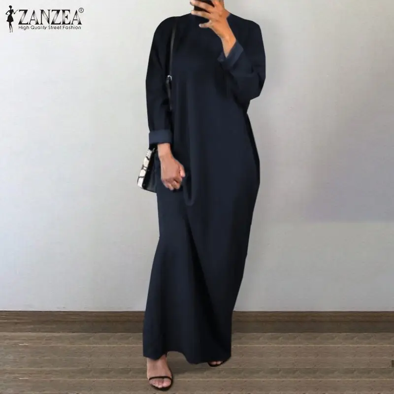ZANZEA осенний женский Дубай, Турция, платье с длинным рукавом, сарафан-кафтан, элегантный однотонный длинный Vestidos Robe Femme мусульманские платья абайя