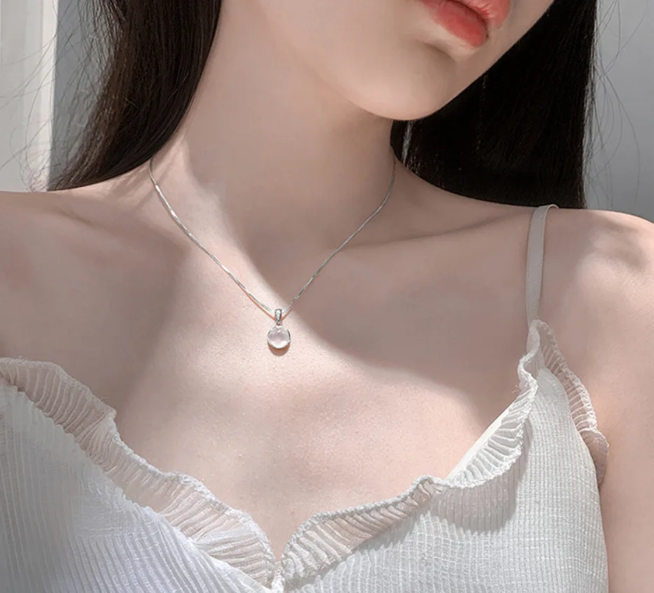 Посеребренная белая круглая подвеска с лунным камнем женское ожерелье на цепочке до ключиц роскошная женская модная бижутерия банкетные аксессуары