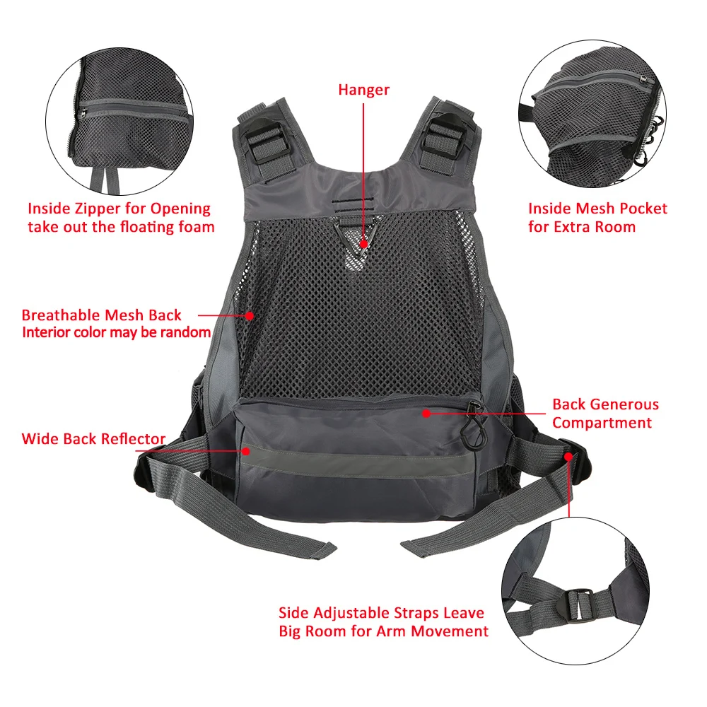 Этот спасательный жилет для рыбалки больше похож на наружный жилет с 11 карманами на молнии и несколькими прикрепляемыми лестницами и аксессуарами петлями на передних и широких отражателях на спине и плече. Под внешним видом это полностью функциональное Флотационное устройство, которое отстегивается для работы в качестве переносчика рыболовных снастей. И этот жилет подойдет практически любому человеку из-за переплетенных регулируемых ремней с пряжкой. Если ваш главный приоритет-это хранение снаряжения, этот спасательный жилет-один из видов. Отлично подходит для рыбалки, КАЯКОВ, каноэ (практически любой тип рыбалки).Особенности:Изготовлен из высококачественного полиэфирного корпуса ripstop и заменяемой пены EPE внутри для превосходной плавучести.Четыре вместительных нагрудных кармана, четыре передних кармана на молнии, два боковых сетчатых кармана и один вместительный задний карман в общей сложности.Аксессуары петли и крепления лестницы на груди приглашают на заказ вложения.Сетка на спине и сетчатая ткань внутри обеспечивают высокую воздухопроницаемость.Открытые стороны оставляют вам больше места для весла, бросания или наведения на воду.Многоярусные регулируемые ремешки с пряжкой подходят практически для любого человека.Отражатели на спине и плечах обеспечивают профессиональную безопасность для спасения жизни.Отлично подходит для ловли нахлыстом, КАЯКОВ, каноэ (довольно много любого типа рыбалки).Характеристики:Цвет: серый/зеленый/красный/синий (опционально)Материал: полиэстер + пена EPEМаксимальный подшипник: 95 кг/209.44lbРазмер изделия: 55*46 см/21,65*18,1 дюймаВес: 750 г/1.65lbРазмер посылка: 50*44*10 см/19,69*17,32 * 3.94inВес посылка: 780 г/1.71lbПосылка:1 * спасательный жилет для рыбалки