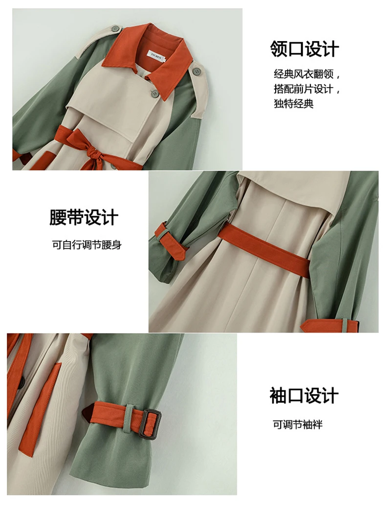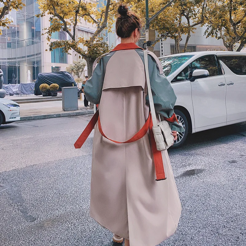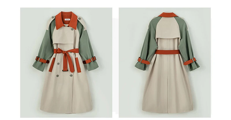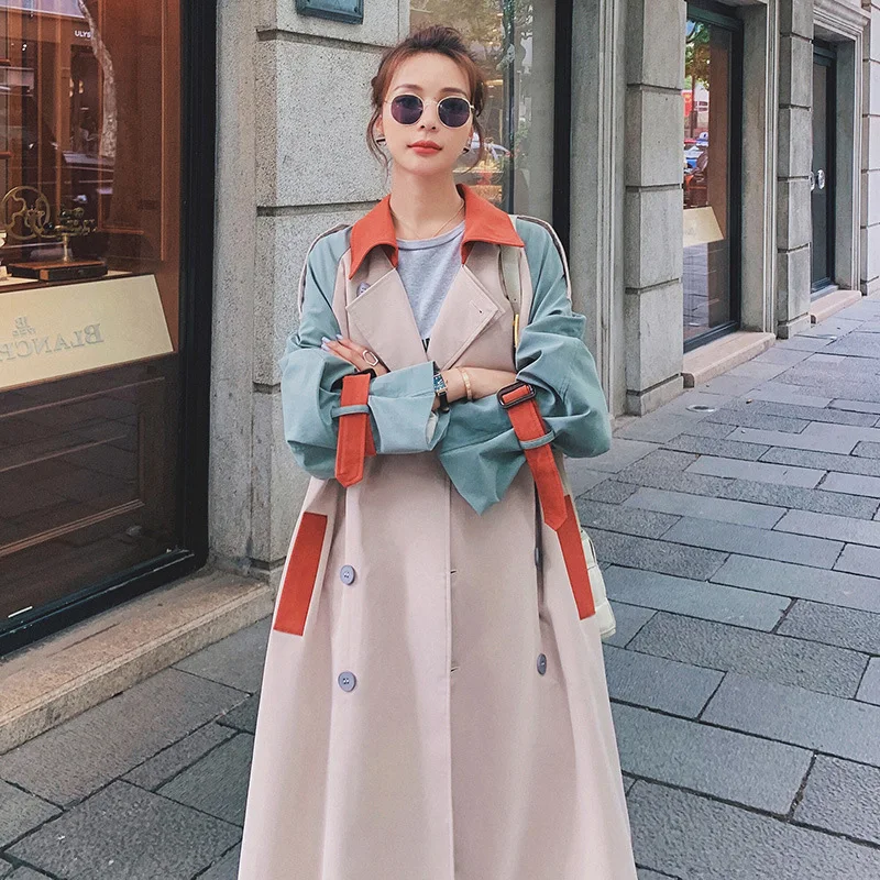 Тренчкот женский двубортный, длинная уличная одежда в стиле пэчворк, весна-осень