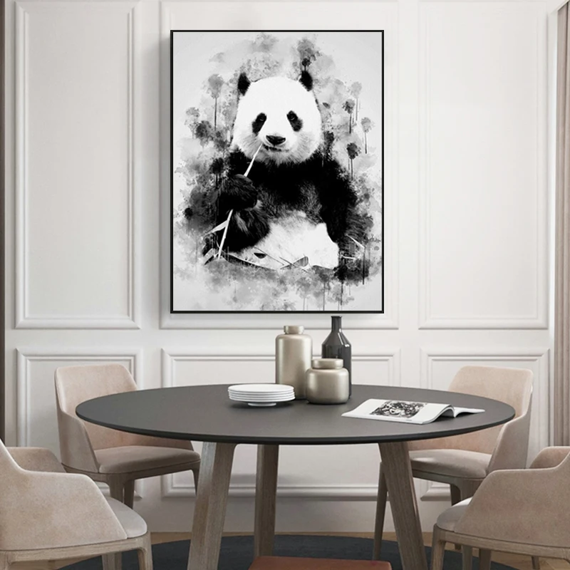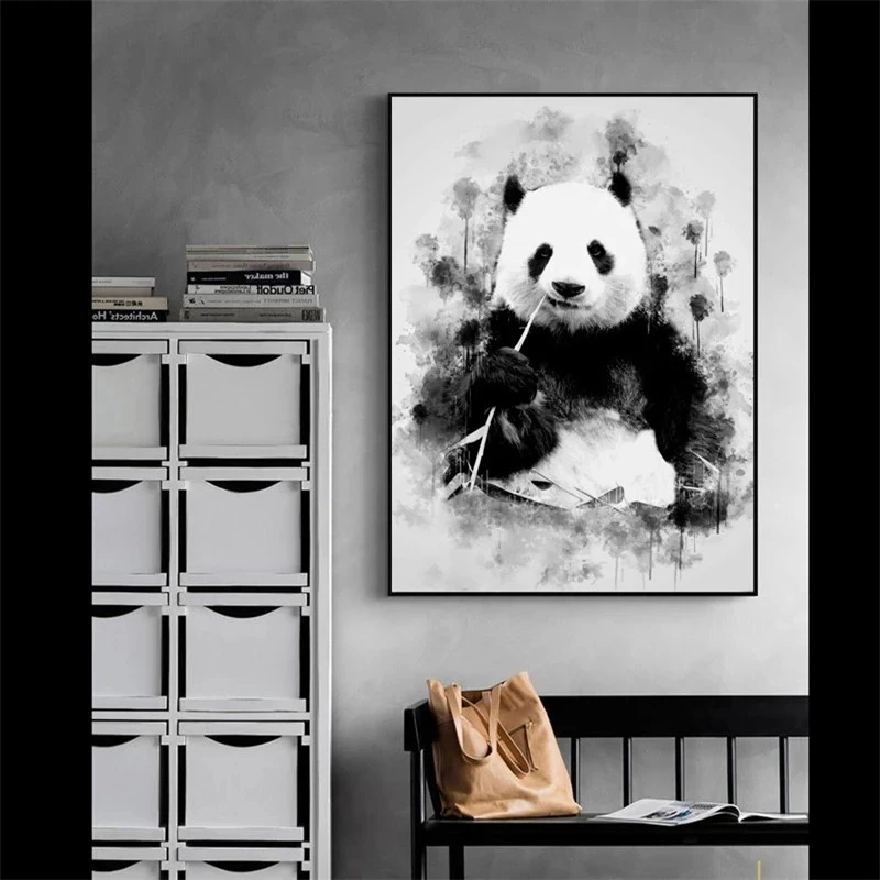 Черно-белая панда, рисунок на холсте, Постер, милый детский настенный художественный принт, картина с милыми животными для домашнего декора, без рамки