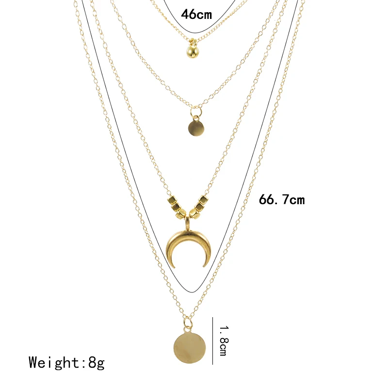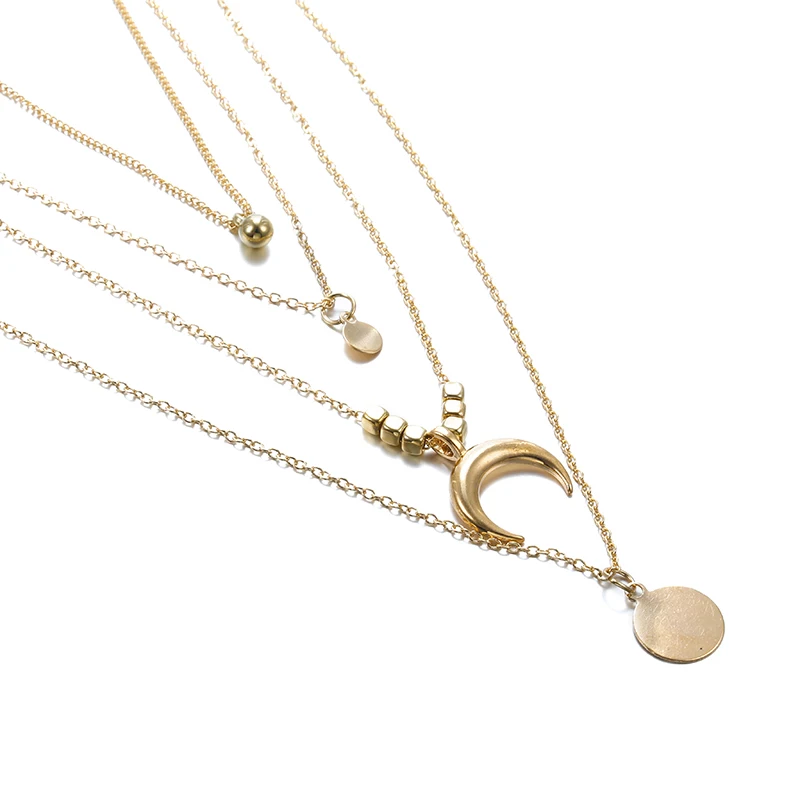 2021 цепи ожерелье Многослойные Луны сплава металлический диск золо...