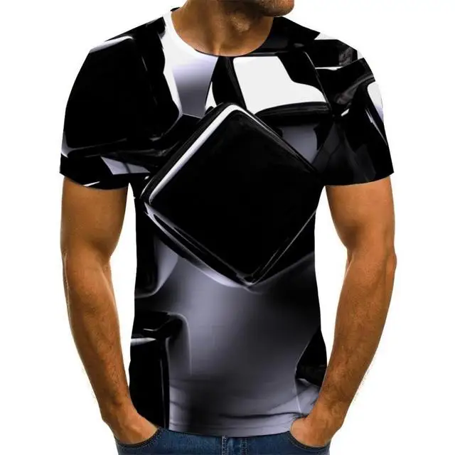Мужская трехмерная футболка, летняя модная футболка с круглым вырезом и коротким рукавом, квадратная трехмерная рубашка, 2020