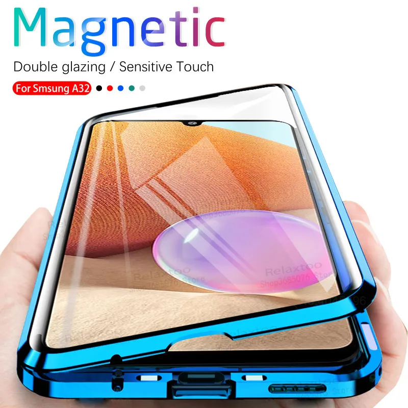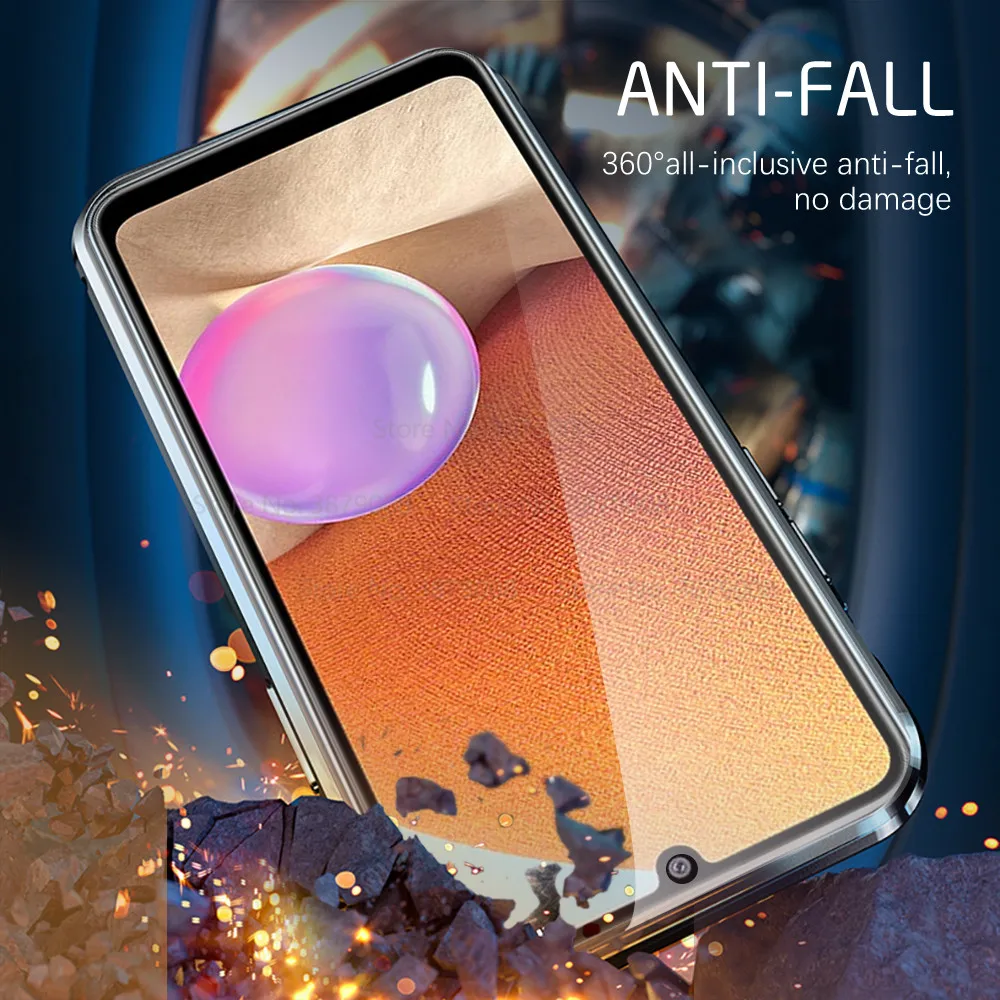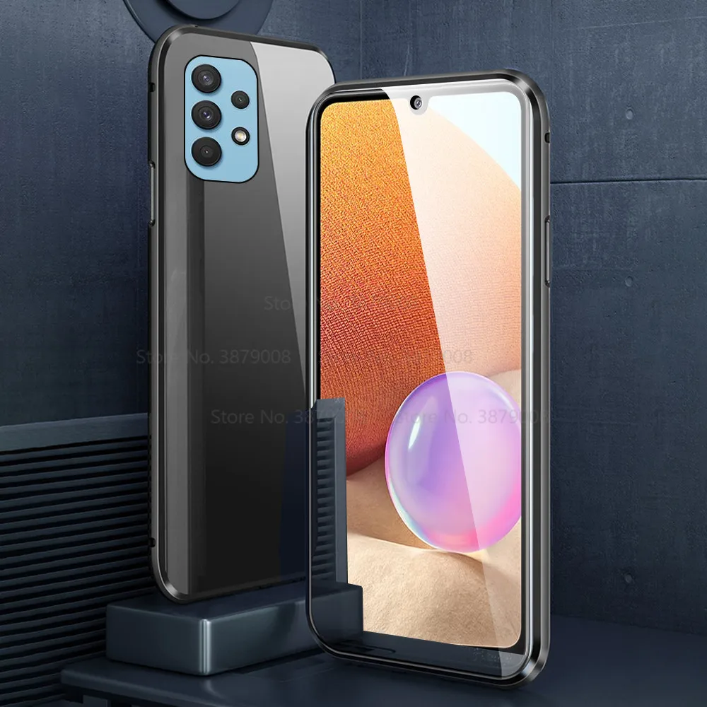 Магнитный чехол-книжка на весь корпус с поглощением на 360 для samsung galaxy a32, a 32, 32a, 4G, a325, A326, металлический бампер, двухсторонний стеклянный чехол