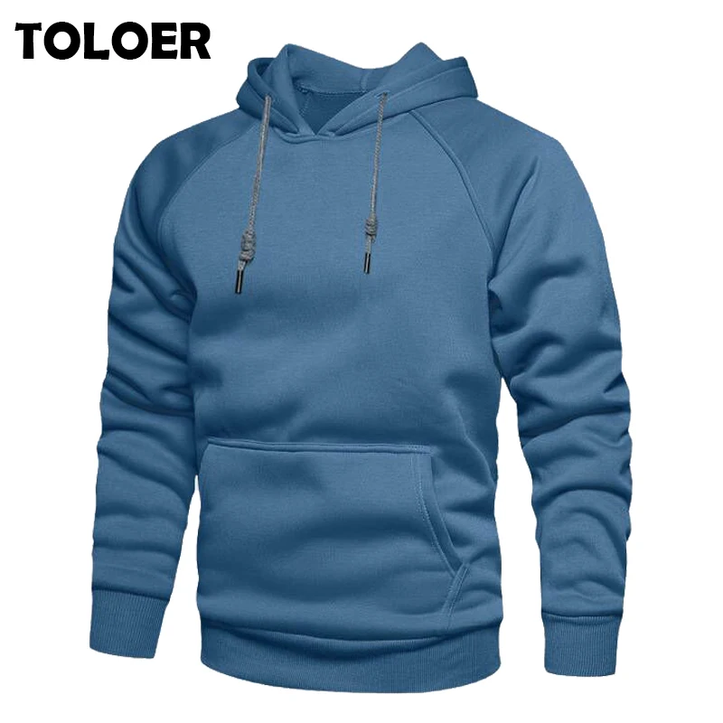 Мужская Флисовая Толстовка с капюшоном, однотонная Толстовка в стил...