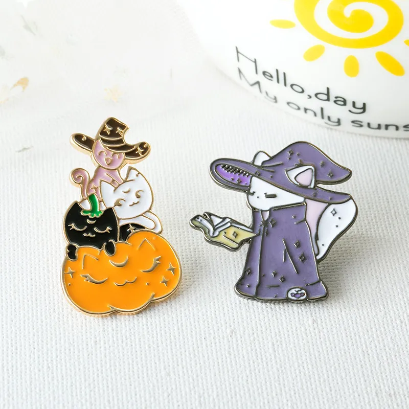 Креативная эмалированная брошь со скелетом-тыквой, забавная брошь в виде ведьмы ужасов, на рубашку, на лацкан, на сумку, симпатичный значок, ювелирное изделие с мультяшным котенком, подарок