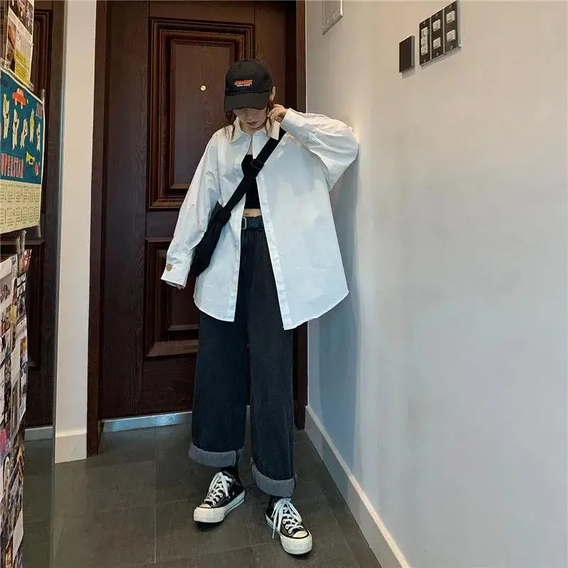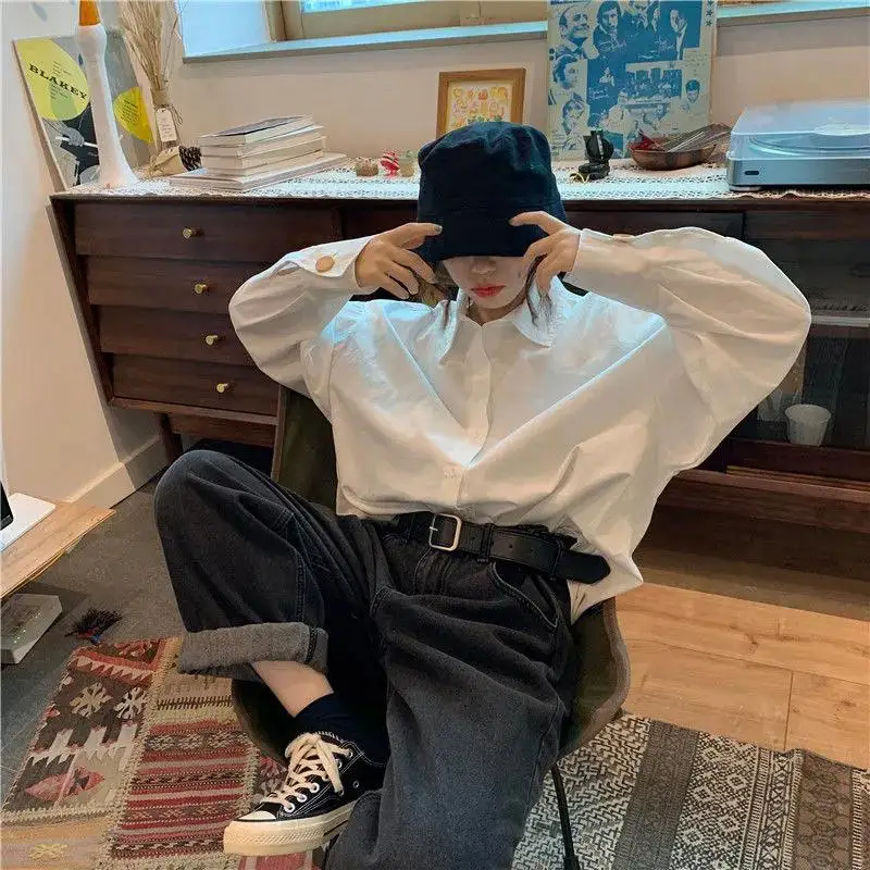 Женская рубашка с длинным рукавом HOUZHOU, белая винтажная уличная ...