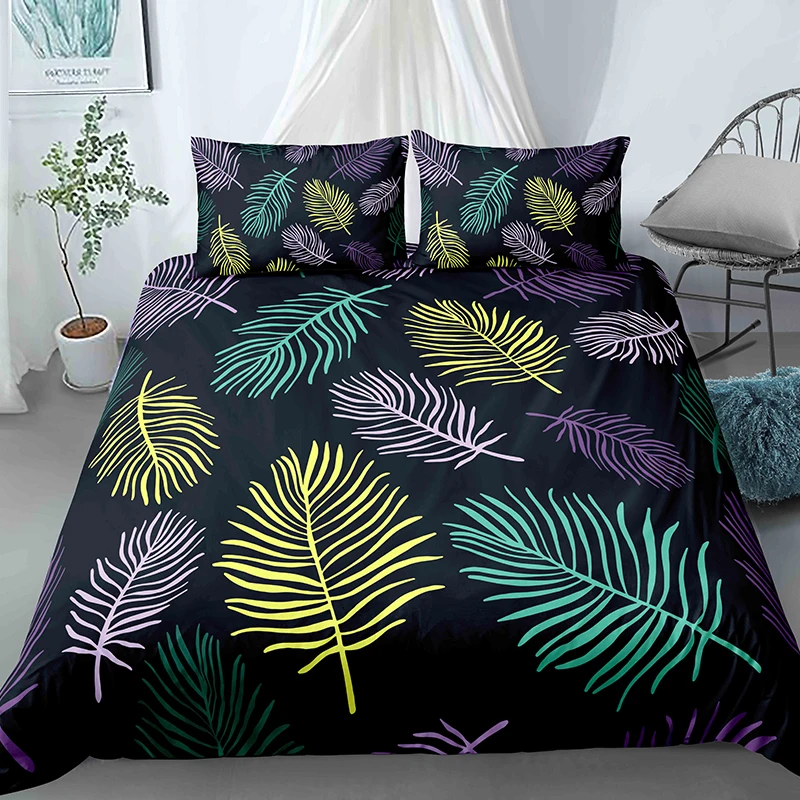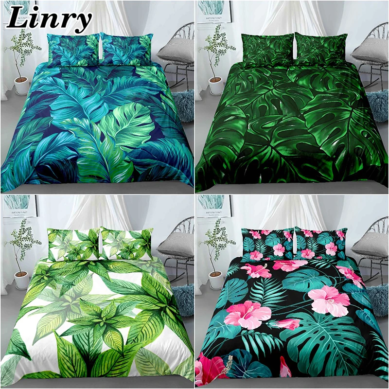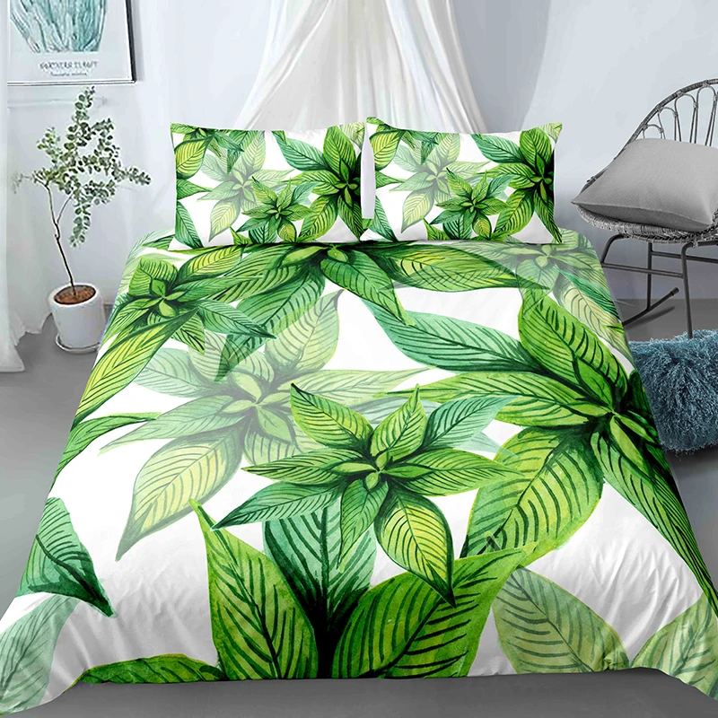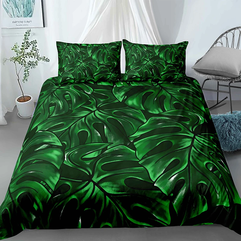 Комплект постельного белья с тропическими листьями, роскошный зелен...
