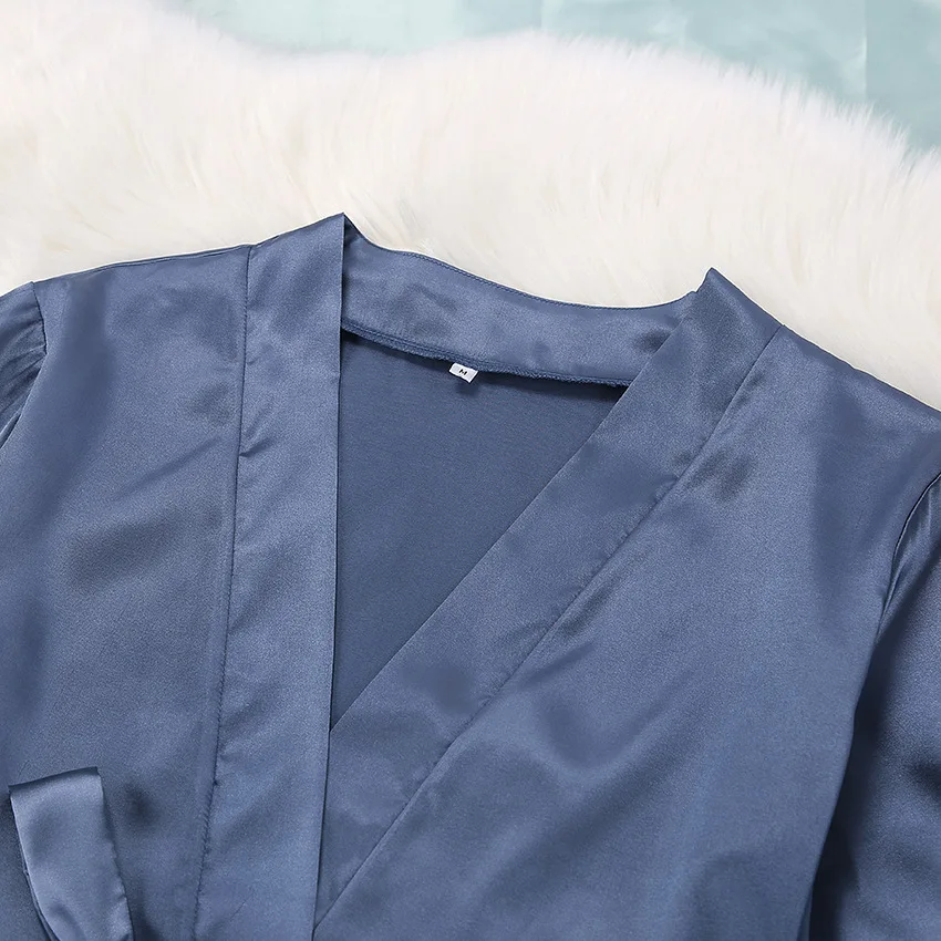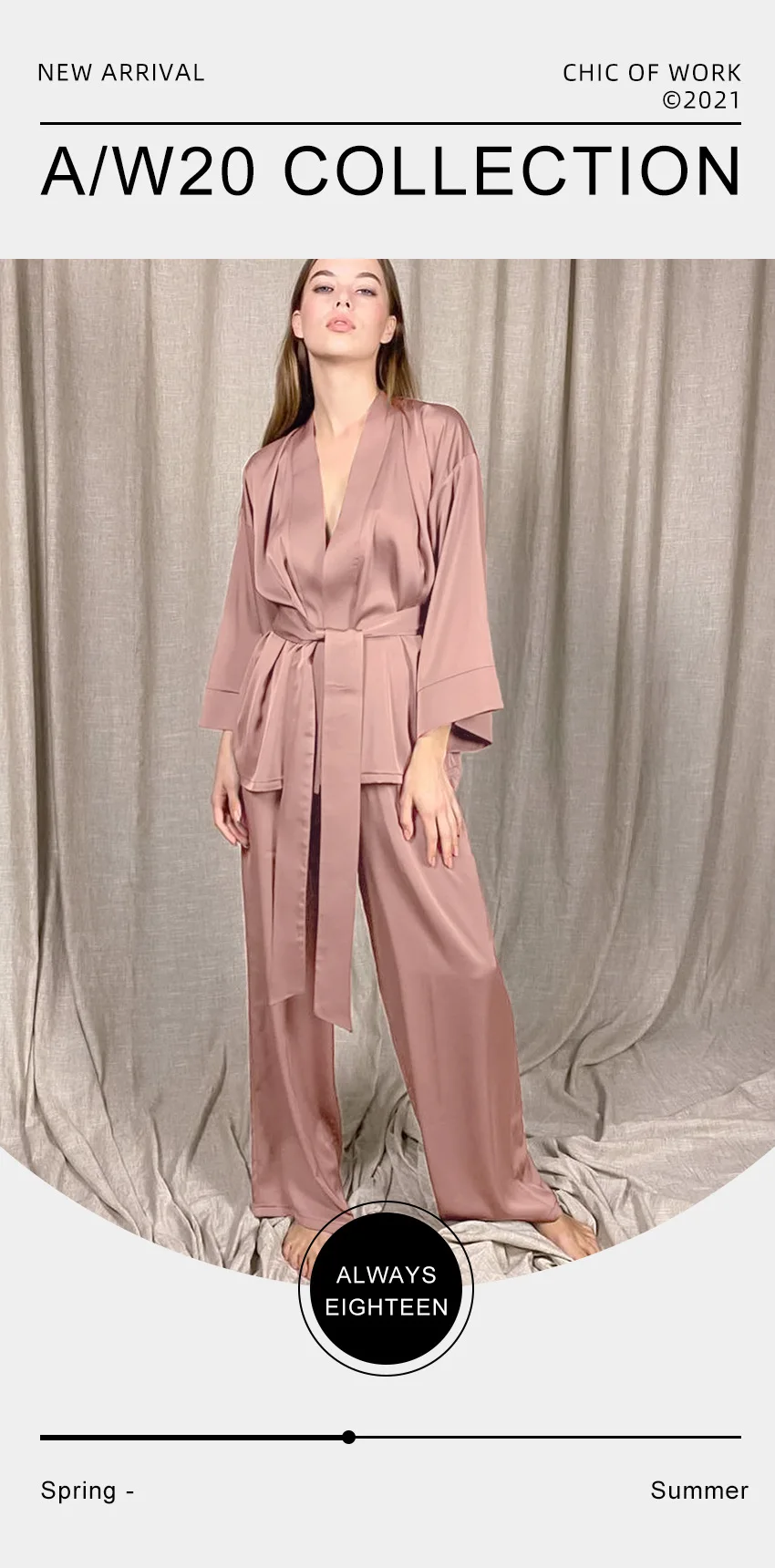Женская пижама, осенний комплект домашней одежды, Атласный халат с длинным рукавом, ночная рубашка, свободная Пижама