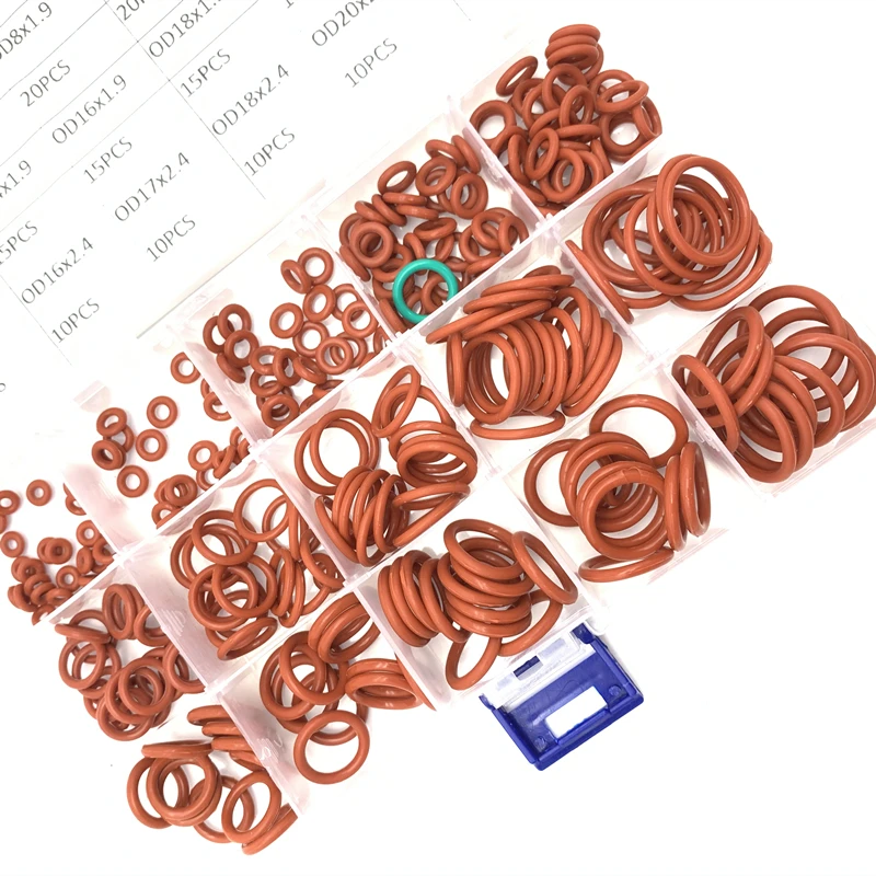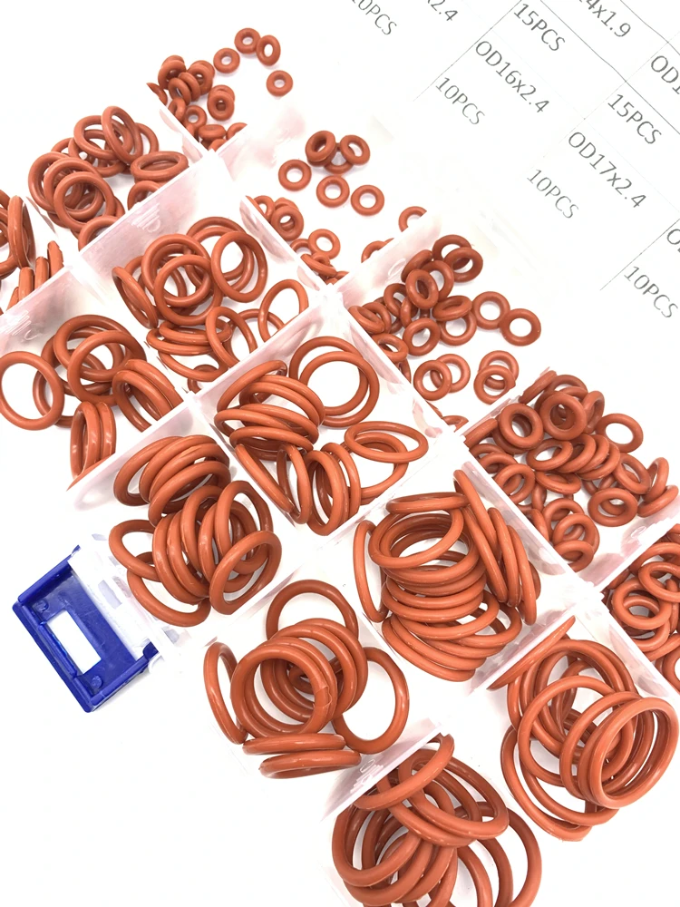 225 шт. уплотнительные кольца из Красного силикона VMQ, уплотнительные кольца, силиконовая шайба, резиновый набор, набор в ассортименте, набор, коробка, кольцо