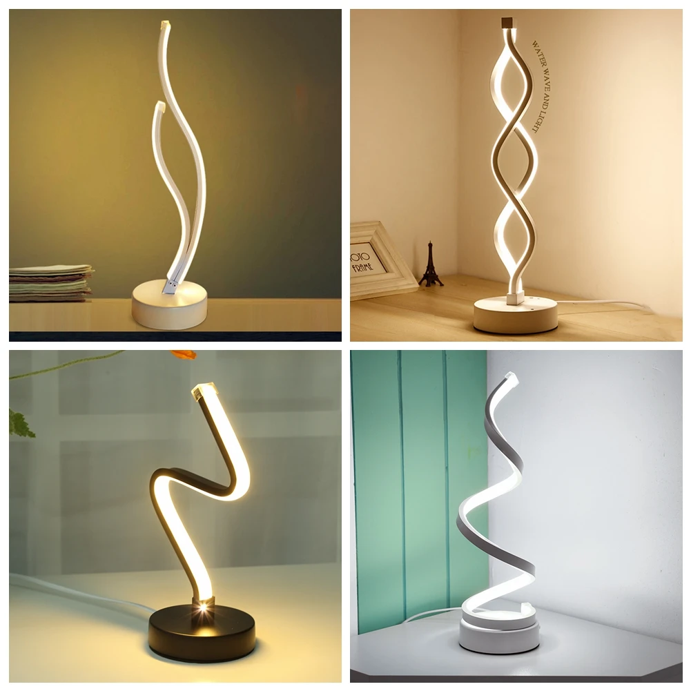 Современная Минималистичная настольная лампа, светодиодная спиральная акриловая лампа, ночсветильник для спальни, гостиной, светильник с вилкой для ЕС и Великобритании