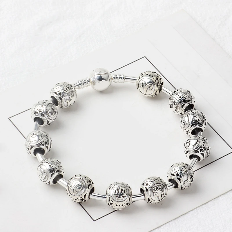 Новые модные очаровательные Оригинальные Старинные Серебряные Круглые бусины с двенадцатью созвездиями подходят для оригинальных женских браслетов Pandora ювелирные изделия