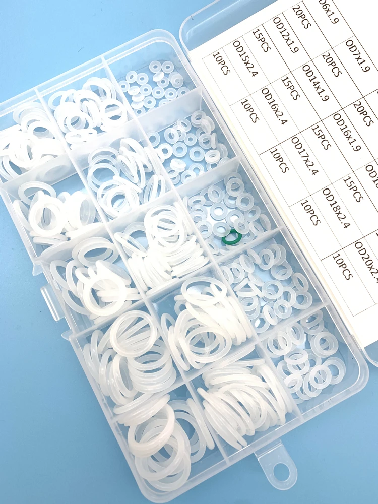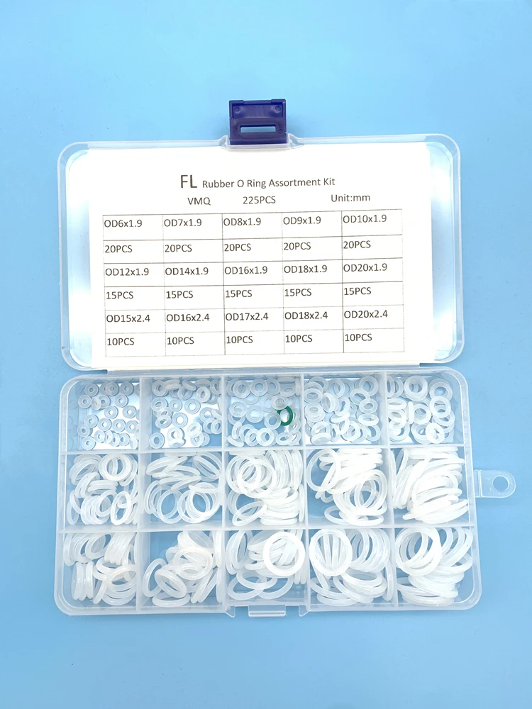 225 шт. белая уплотнительная кольцевая прокладка VMQ, силиконовые уплотнительные кольца пищевого класса, силиконовое кольцо, комплект уплотнительных колец при высокой температуре, коробка, кольцо