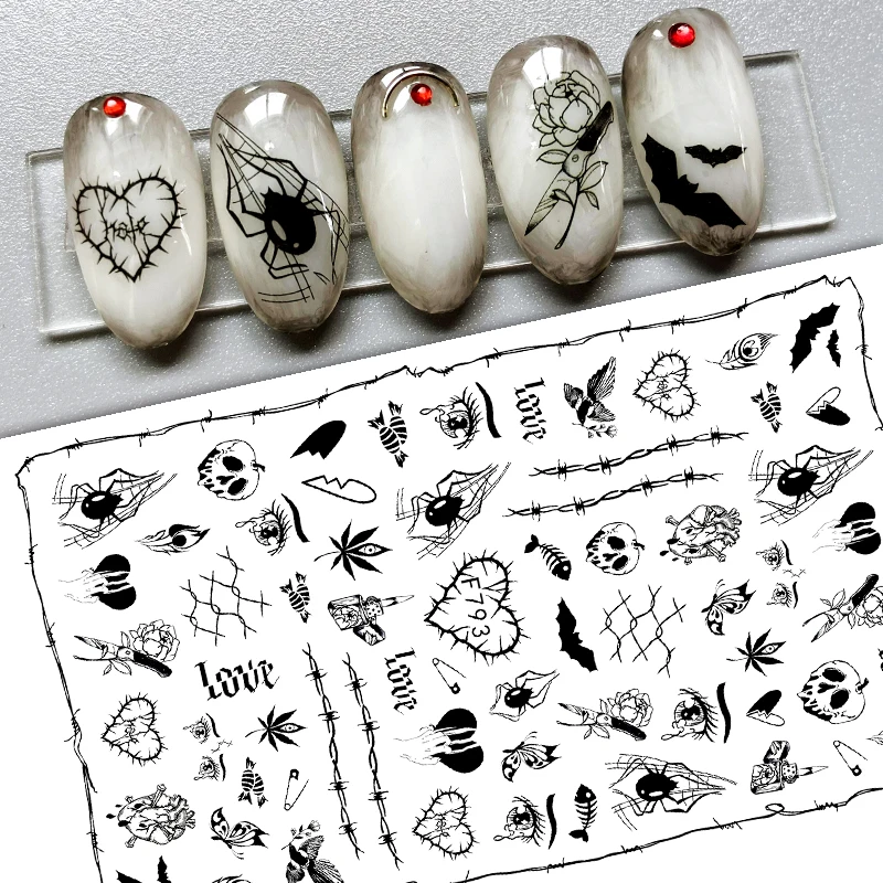 10 шт. Хэллоуин серии триллер череп клоун девушка 3D реалистичный узор наклейки для ногтей слайдер украшения красоты инструмент
