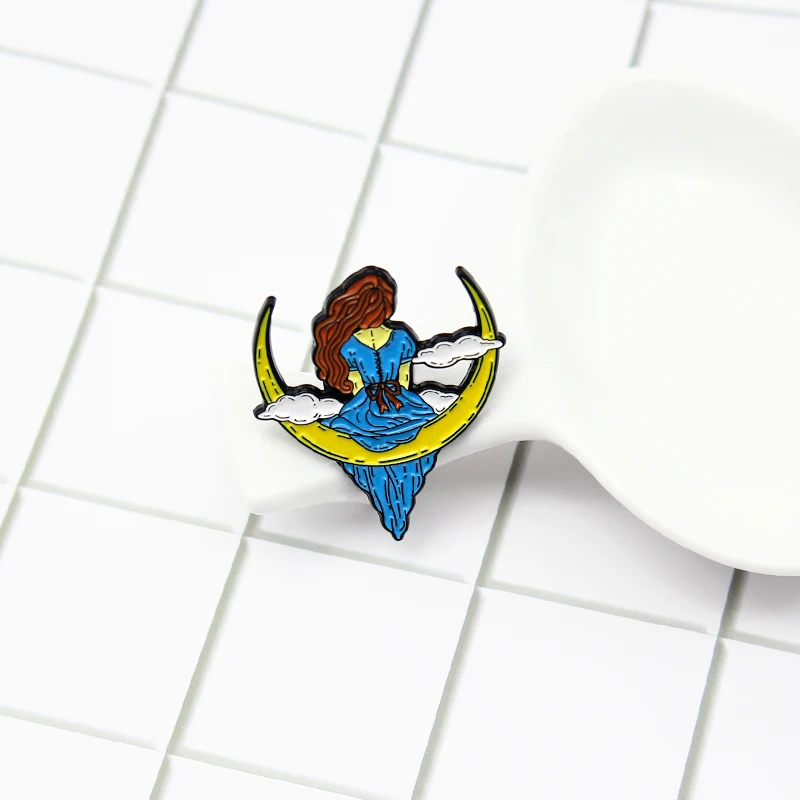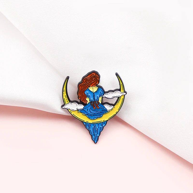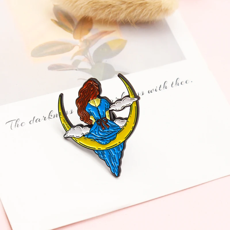 Эмалированная заколка Moon Girls and Moon Cat, индивидуальная закол...