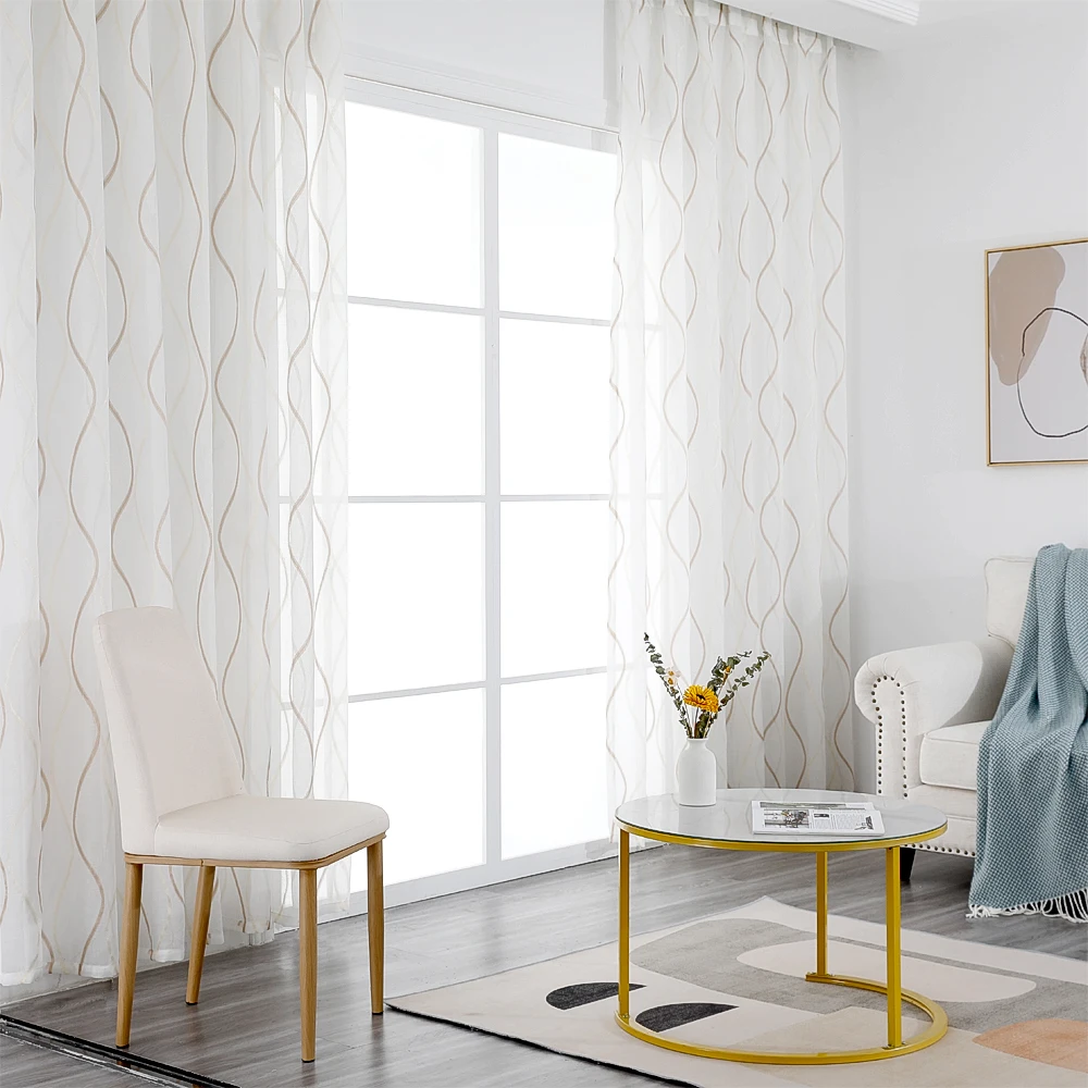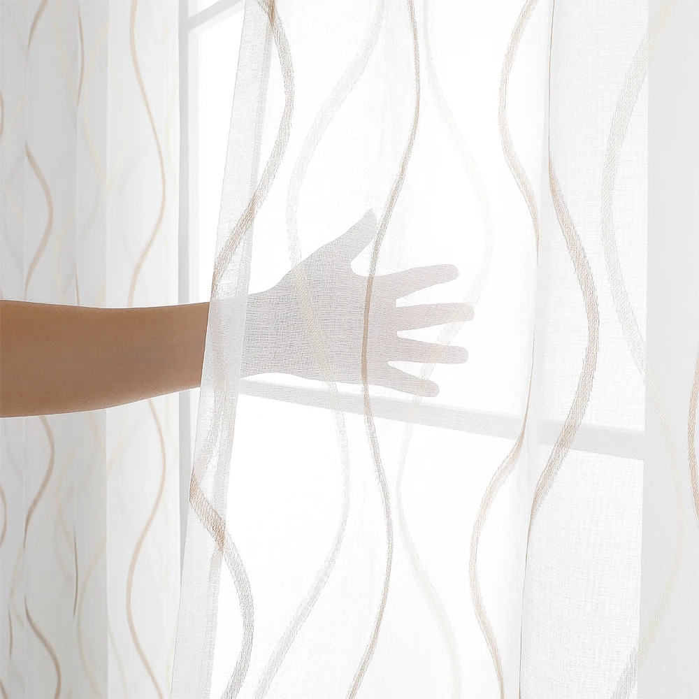Тюлевые шторы CDIY в японском стиле, с вышивкой и волнистыми полосками для гостиной, кухни, современные шторы в спальню, домашний декор, занавески