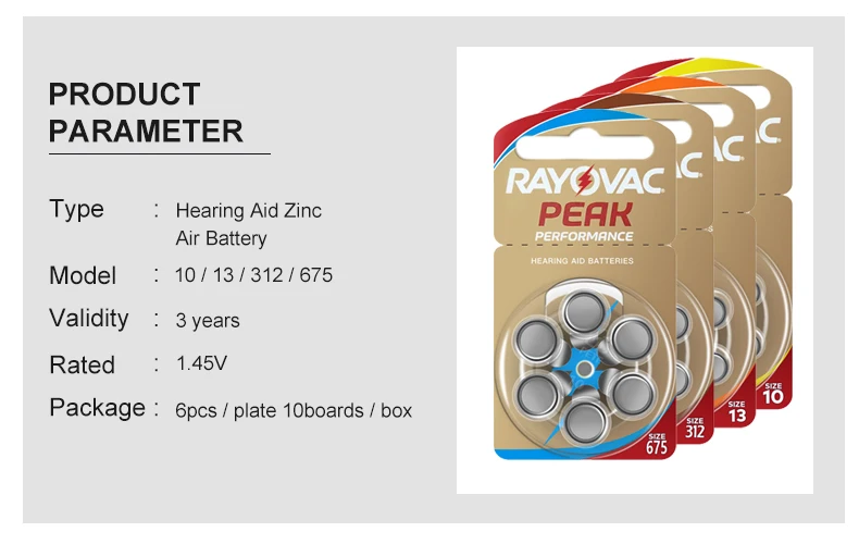 60 шт Rayovac пиковый слуховой аппарат батареи 312 A312 312A ZA312 PR41 S312 цинковый воздушный Аккумулятор для BTE слуховые аппараты
