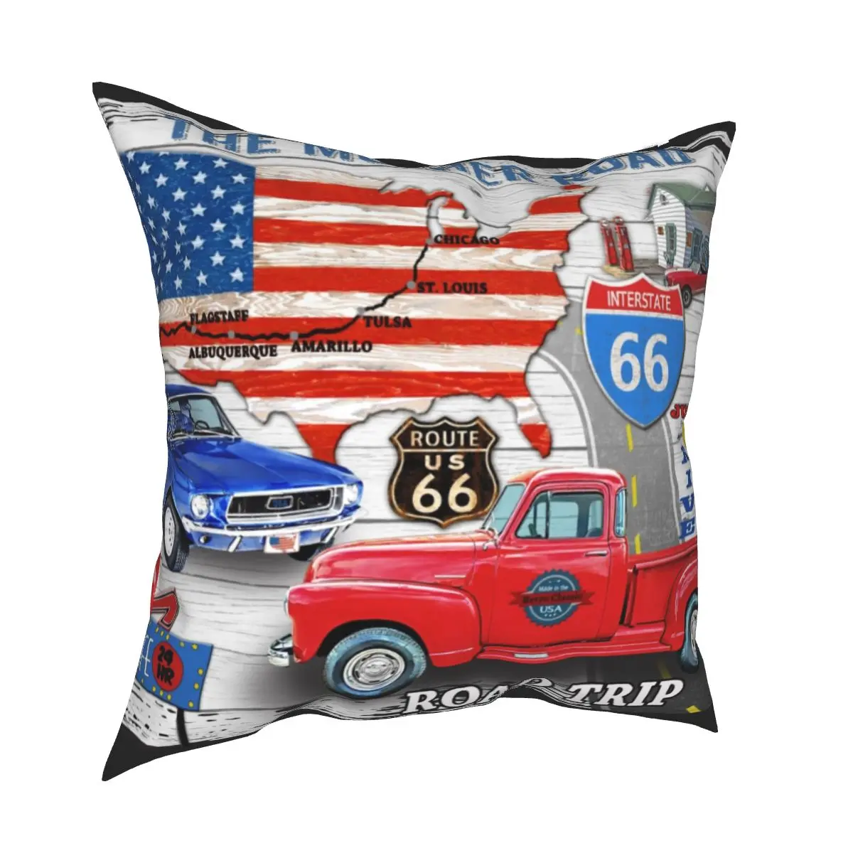 Квадратный Чехол на подушку в стиле американские магистрали по дороге, 66 дюймов, винтажный Чехол на подушку в стиле ретро, декоративный Чехол на подушку, 40*40 см