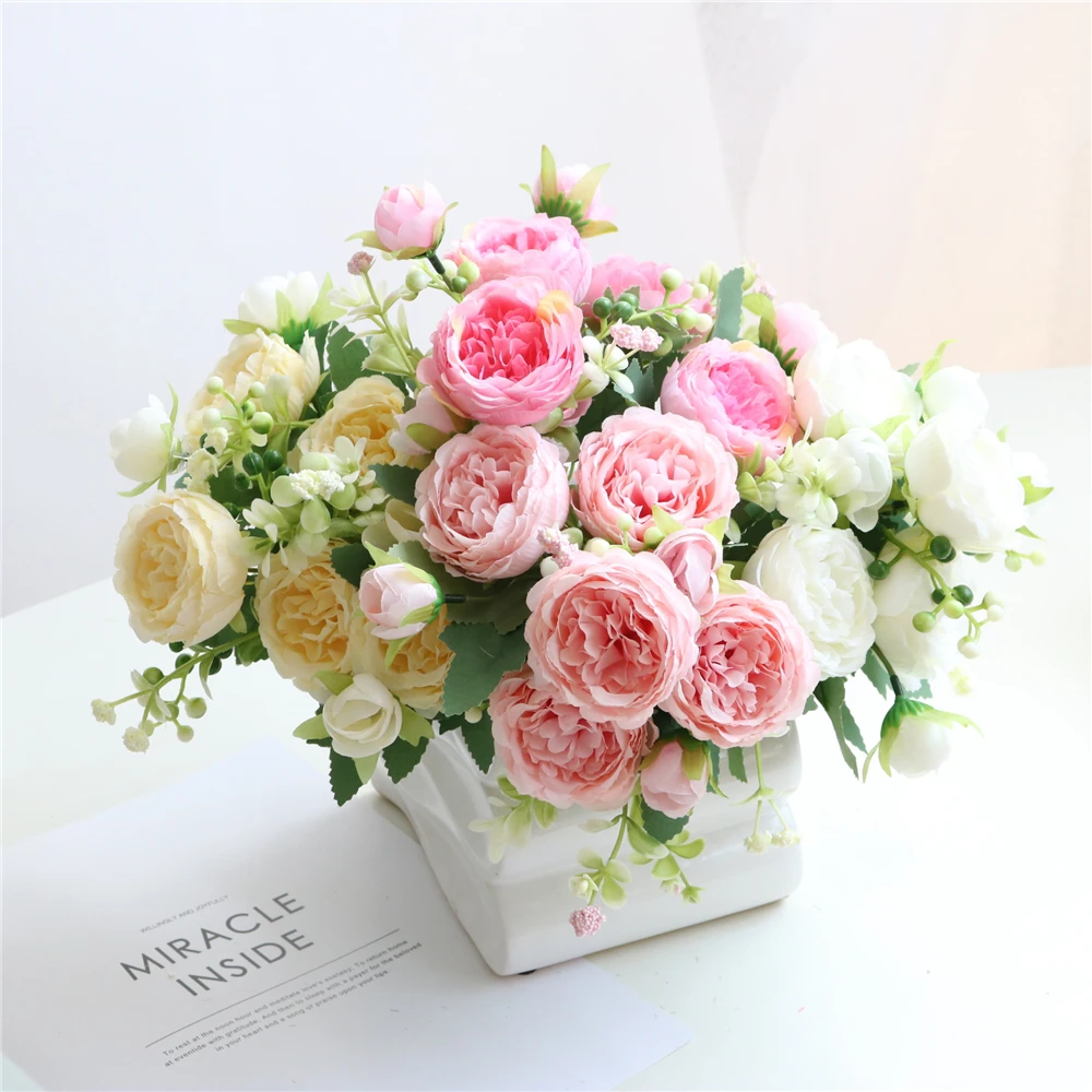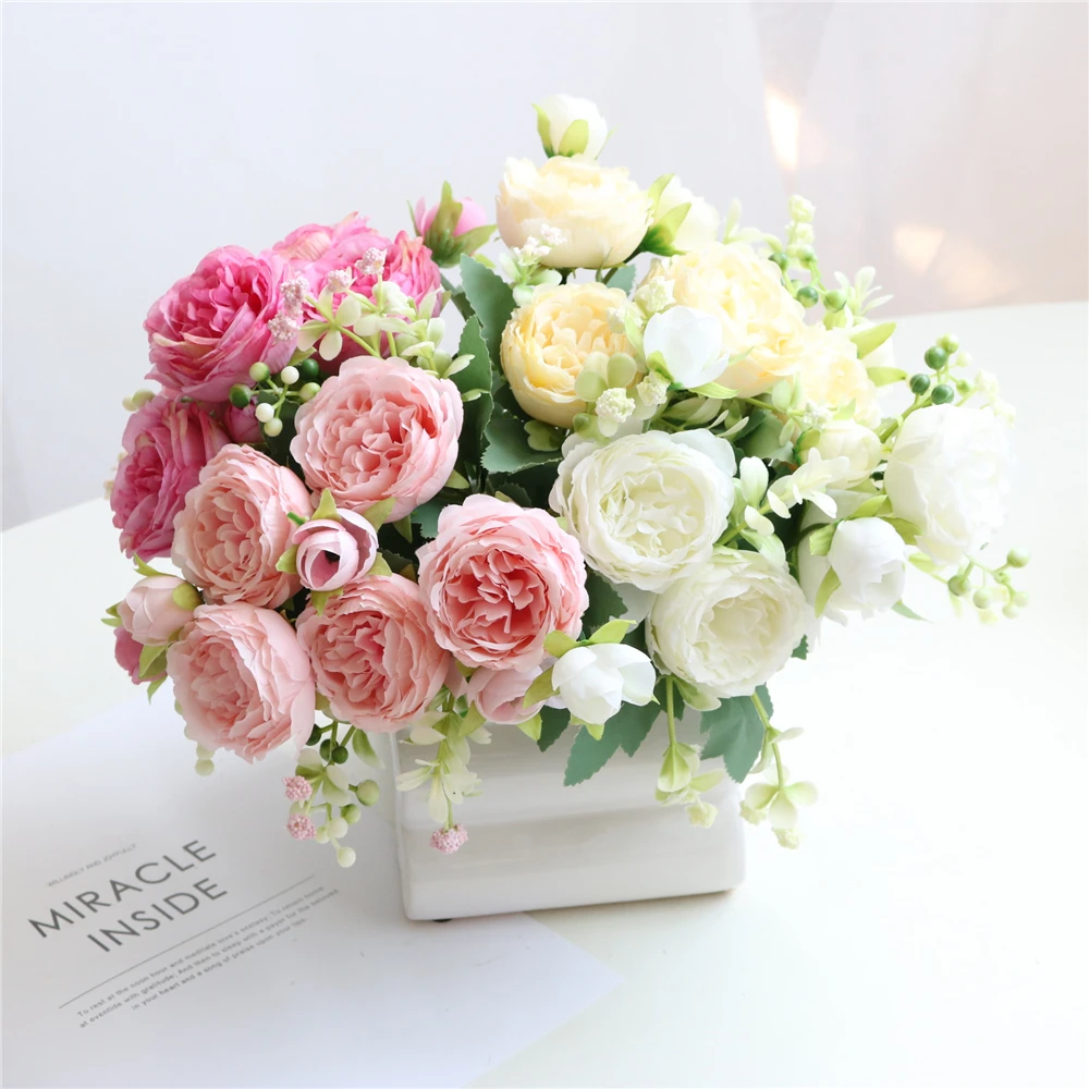 1 букет из 9 искусственных пионов, цветов чайной розы, камелии, цве...