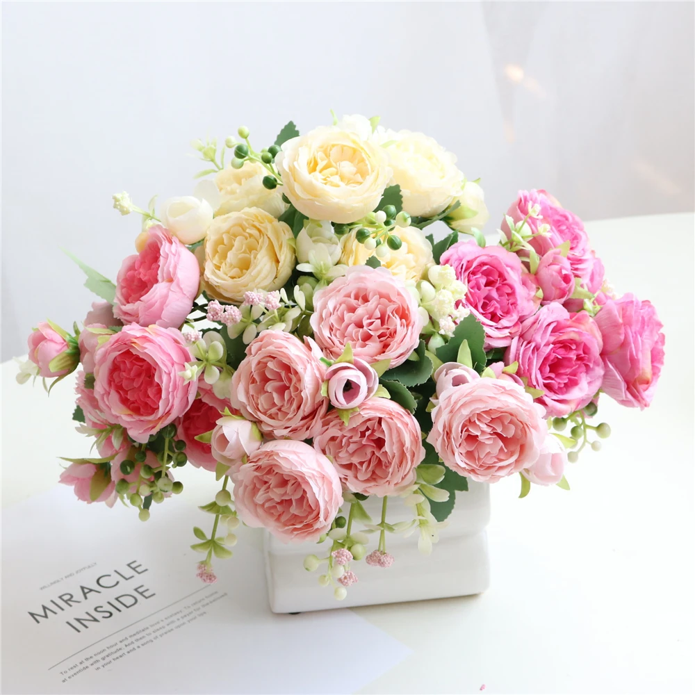 Пион 32 см 1 шт., искусственный цветочный букет сделай сам, домашний декор, 5 бутонов из шёлки, цветочный букет, искусственные цветы, свадебное украшение, цветок