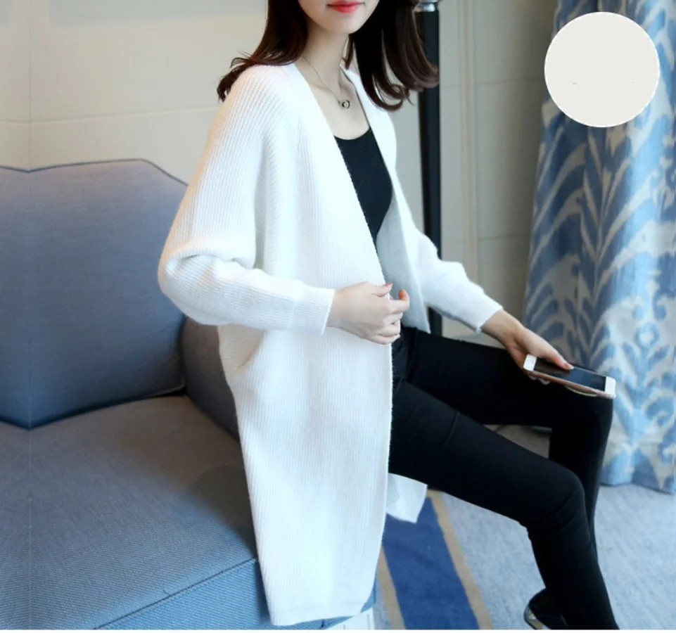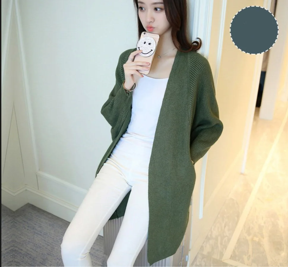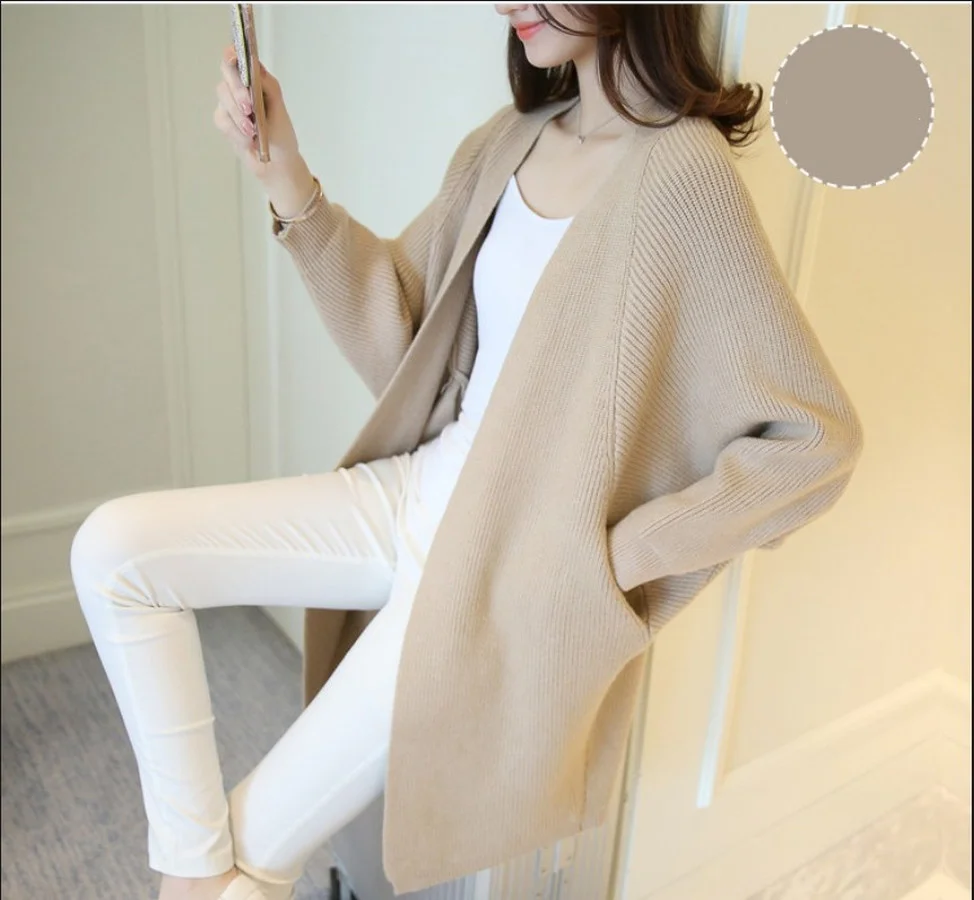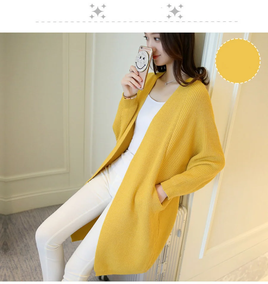 Женский вязаный кардиган, длинный свободный свитер черного цвета с рукавами летучая мышь, осенняя кофта
