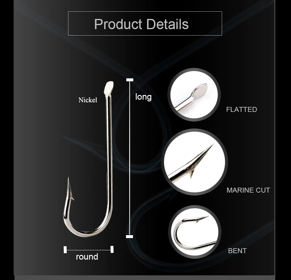 FTK новый длинный круглый изогнутый рыболовный крючок из высокоуглеродистой стали, 100 шт.лот, плоский 1 #-10 #, очень острый Рыболовный крючок