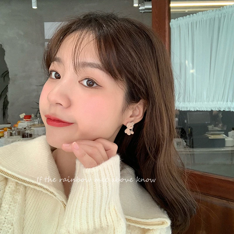 Новые корейские милые смешные плюшевые маленькие серьги-гвоздики с милым бантом медведем изящная серьга модные украшения 2021