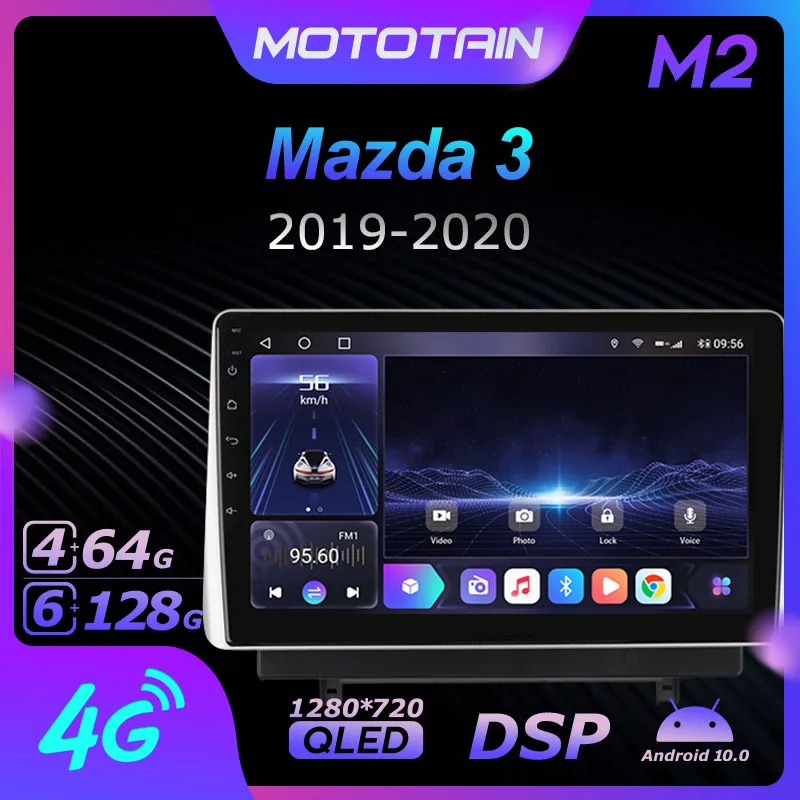 Автомагнитола Mototain, 2 Din, для Mazda 3 2019-2020, Android 10,0, мультимедиа, 4G LTE, 6 ГБ ОЗУ, 128 Гб ПЗУ, 1280x720