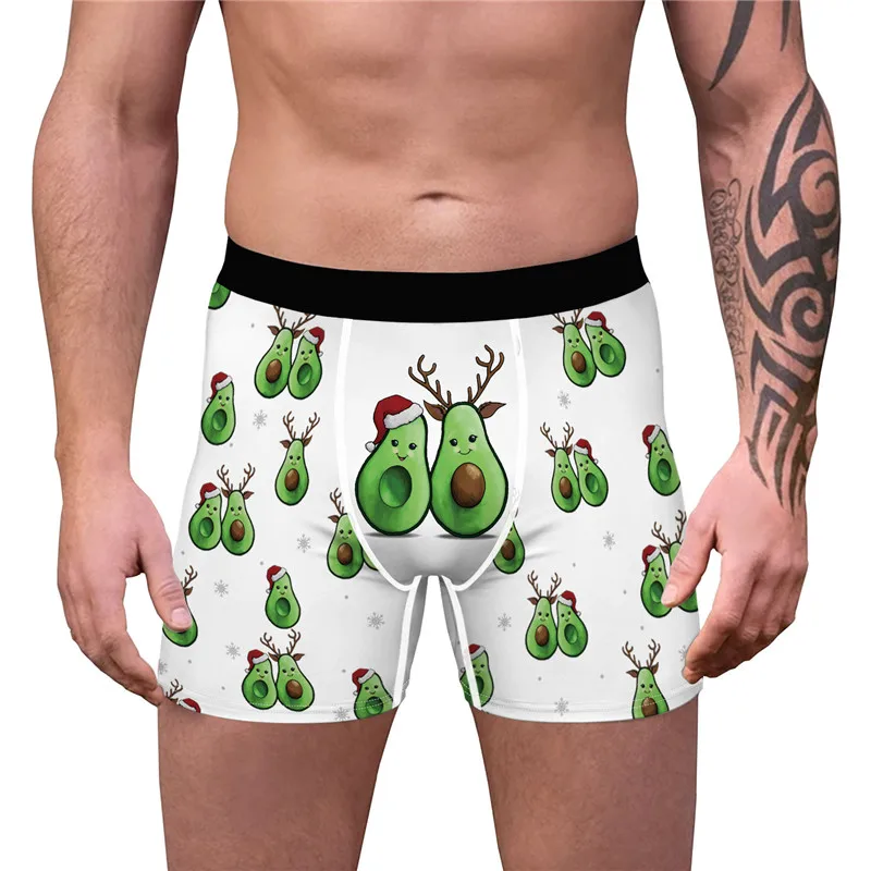 Боксеры мужские с 3D забавным авокадо, рождественские праздничные Трусы-шорты, юмористическое нижнее белье, брендовые шорты