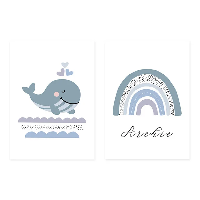 Настенные плакаты на заказ с изображением синего Кита, радуги для детской комнаты