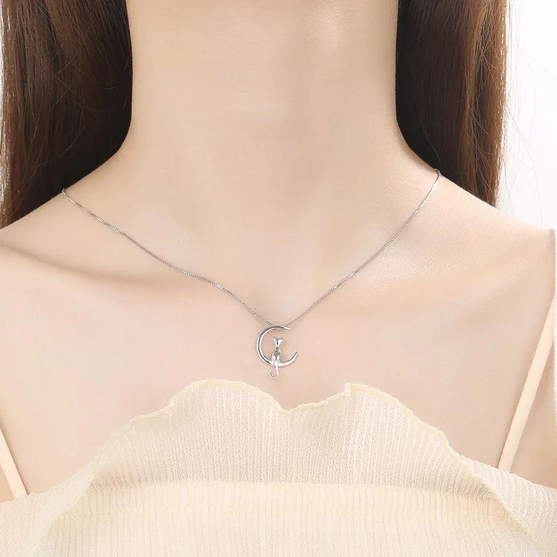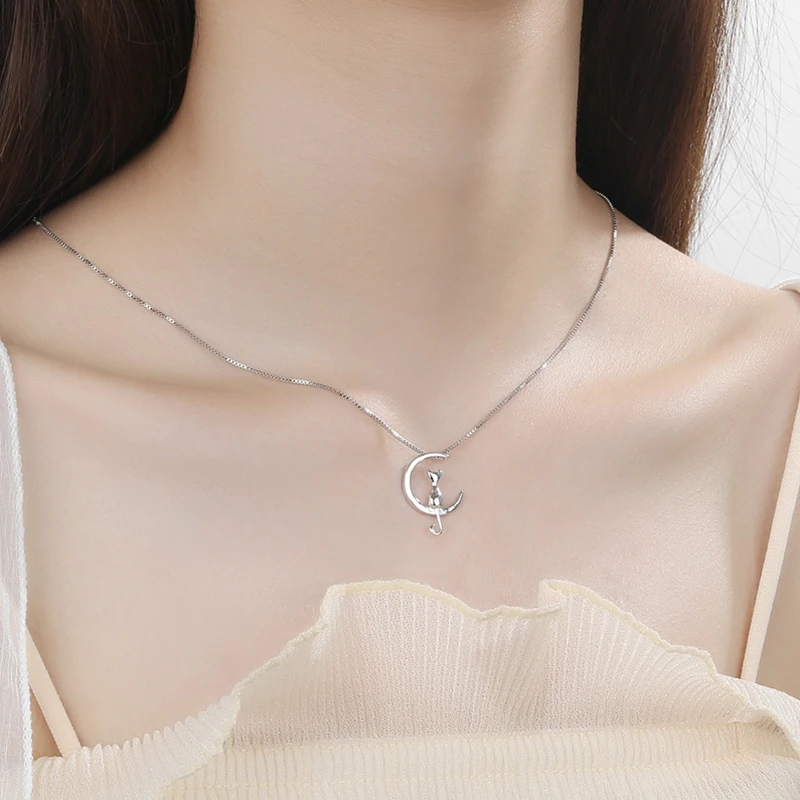 YWSHK S925 Серебряные украшения Винтажные корейские длинные кошечки лунные ожерелья для женщин Свадебные колье модное Очаровательное ожерелье