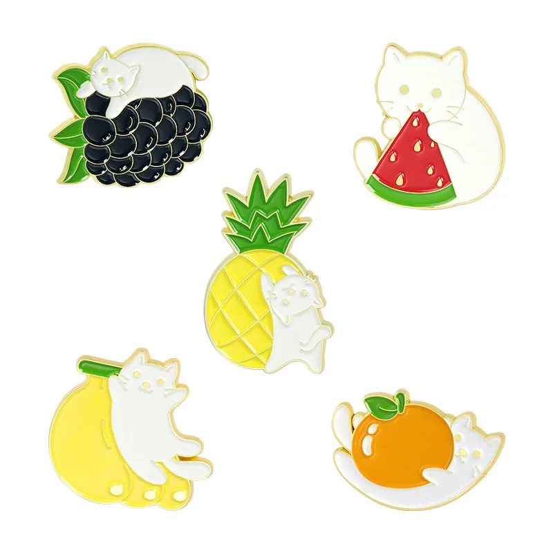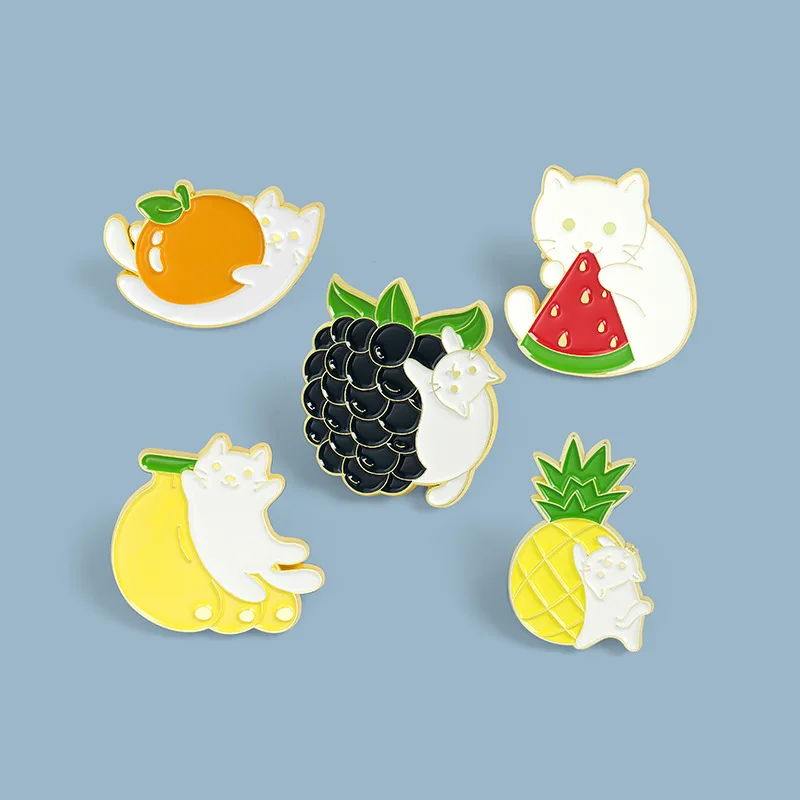 Забавные эмалевые булавки с фруктами, кошками, ананасами, черникой, бананом, арбузом, значок на лацкан, мультяшное ювелирное изделие, подарок для детей