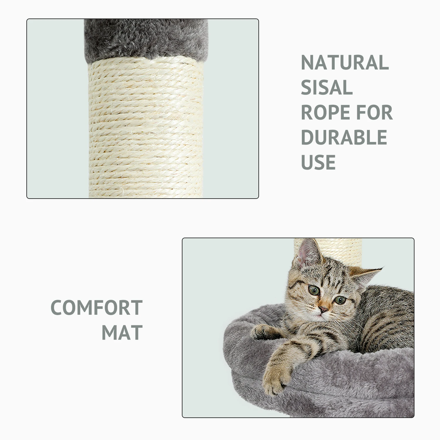 ·Натуральный сизаль веревка обернутая Когтеточка: все когтеточки являются естественным сизалем, предоставляя вашему питомцу чистую поверхность для заточки ее когтей, поэтому у нее меньше желания царапать вашу мебель и ковер! Когтеточка, которую мы дали вам бесплатно, это именно то, что ваши кошачьи друзья должны поддерживать ее здоровые ногти.
