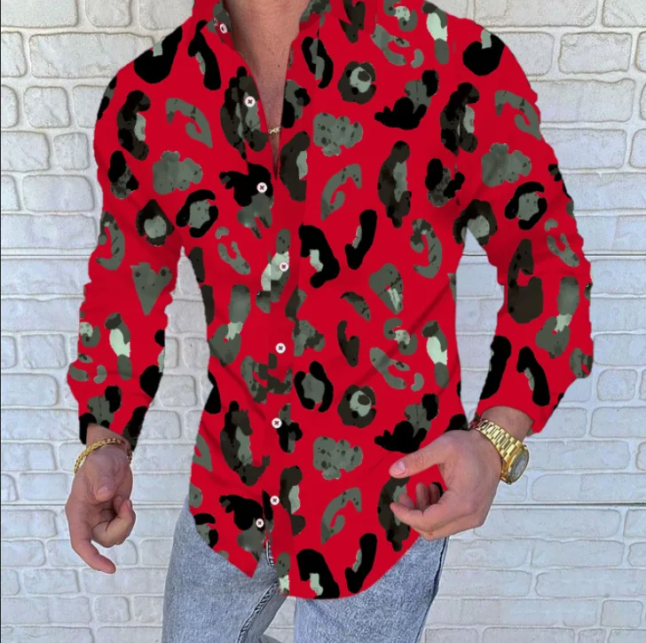 Мужская однобортная рубашка с принтом, Повседневная модная рубашка ...