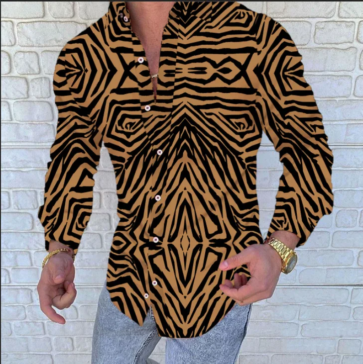 Рубашка мужская с длинным рукавом, Повседневная блуза с принтом, уд...