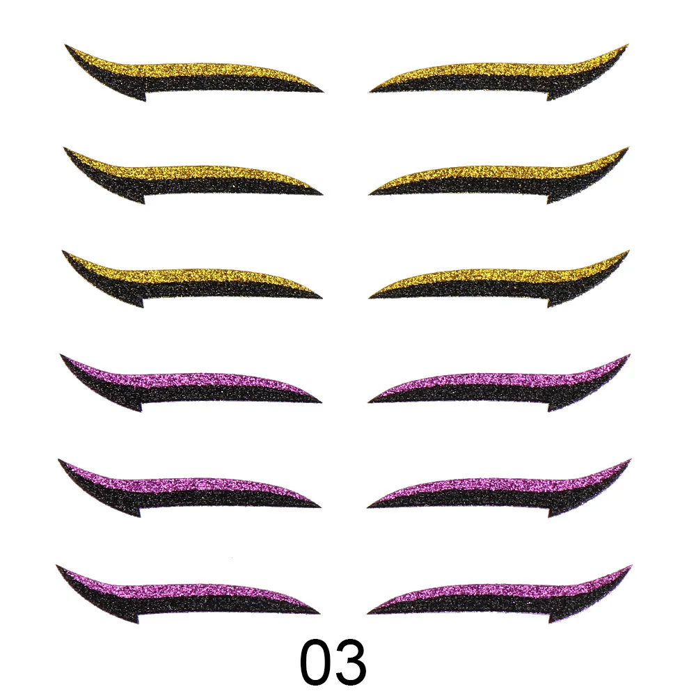 6 пар наклейки для подводки век Самоклеющиеся Многоразовые долговечные блестящие наклейки для век кошачий глаз женские инструменты для макияжа